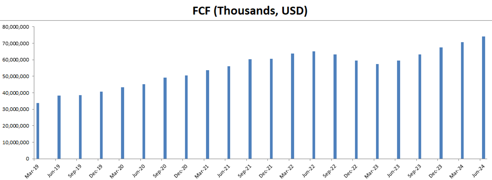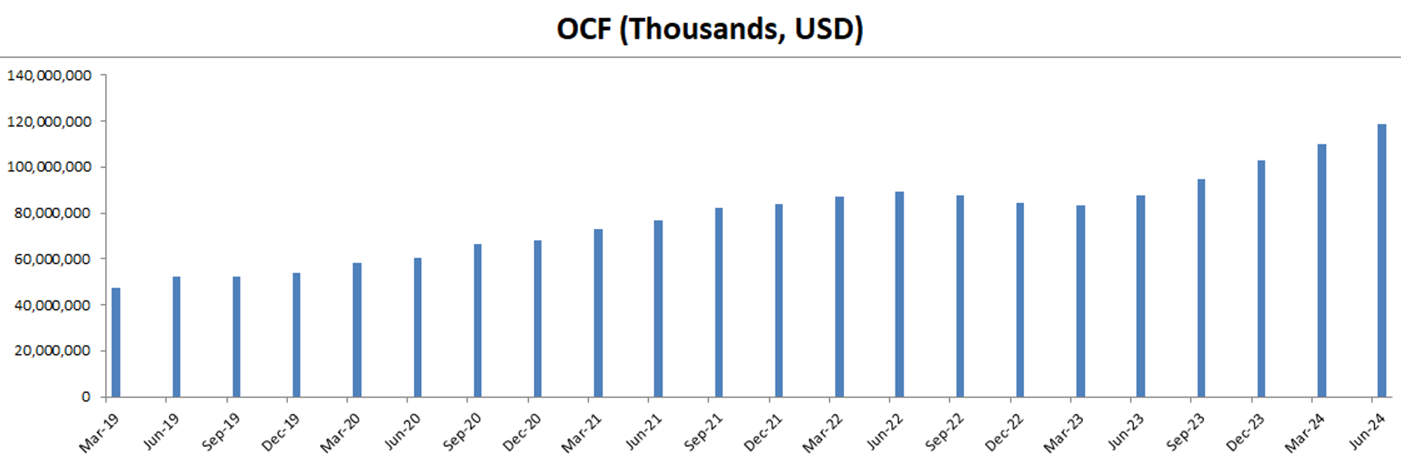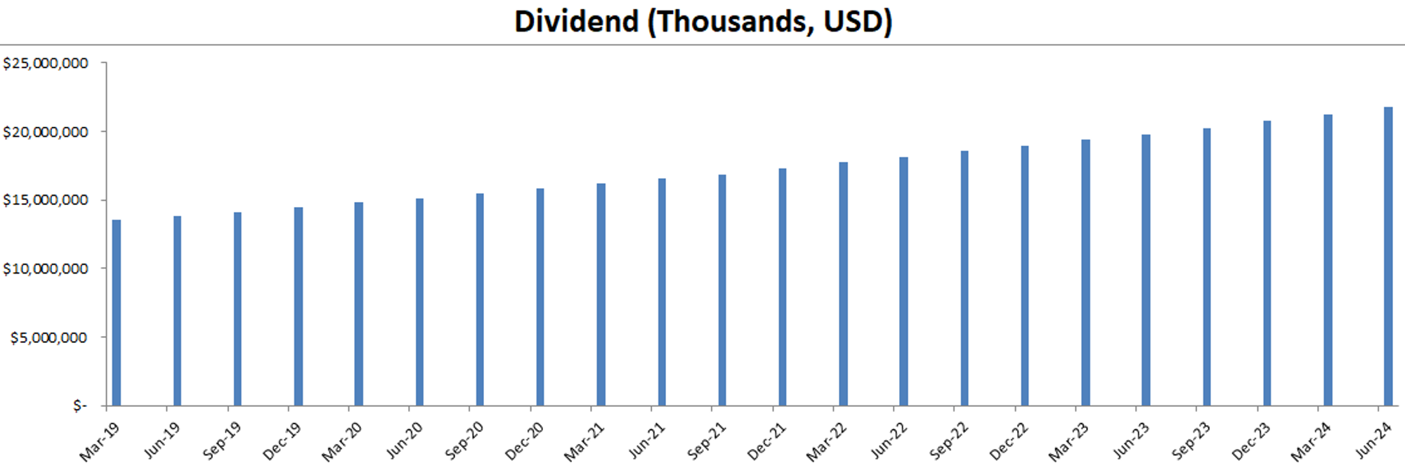 公司派发股息的同时,还进行了股份回购,最新季度回购了价值3.69B的股份,目前1年回购的股份价值16.77B