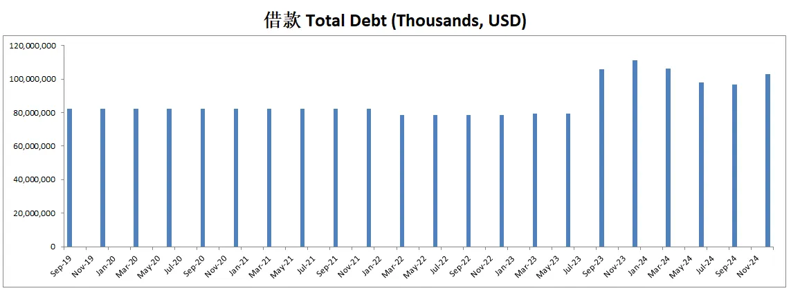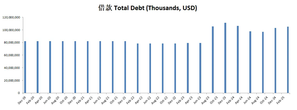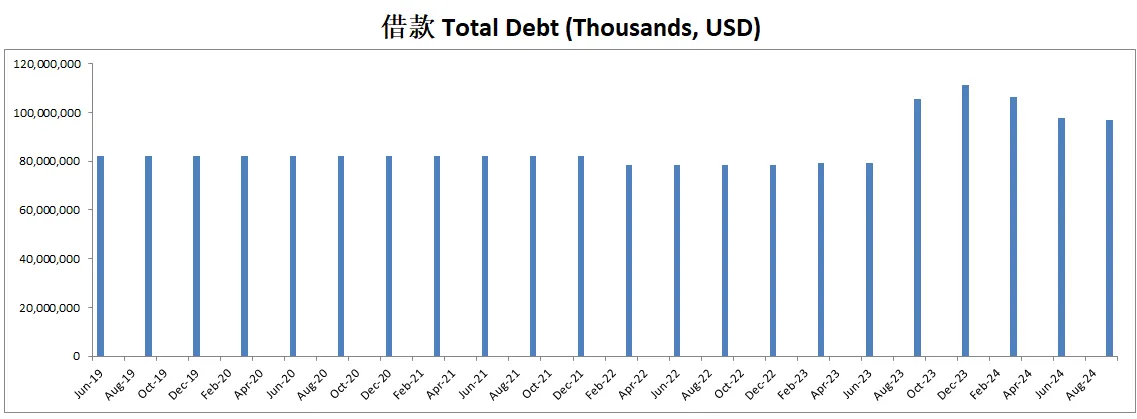 基本面来看,总借款相较于上个季度,降低了6.07B,目前虽然还有88.35B借款,但是手上现金有80.02B,基本上可以直接还清