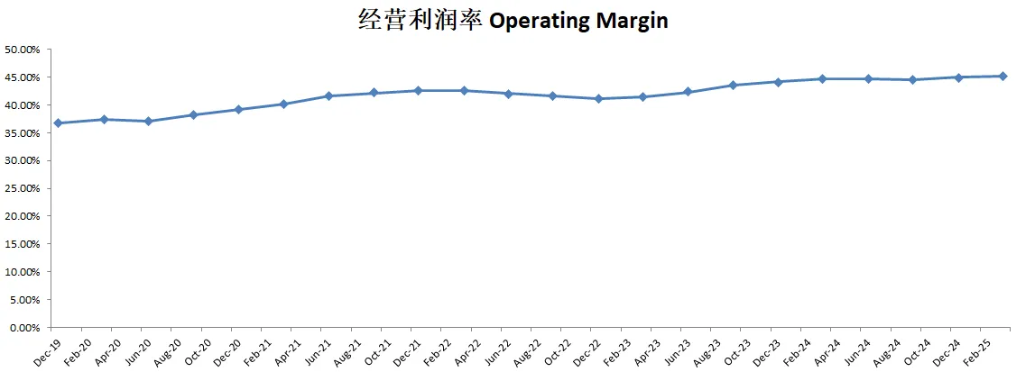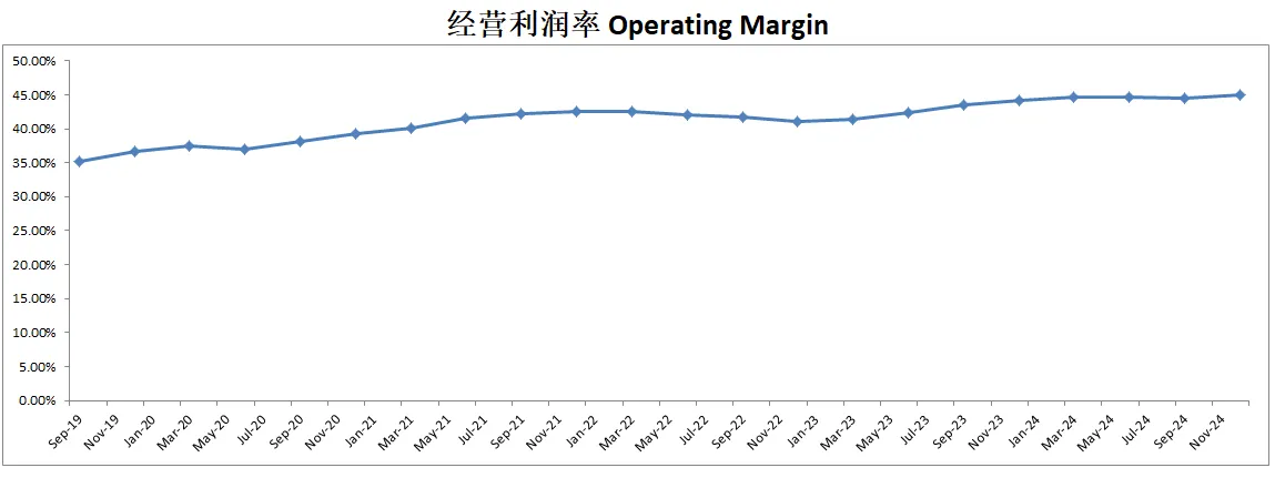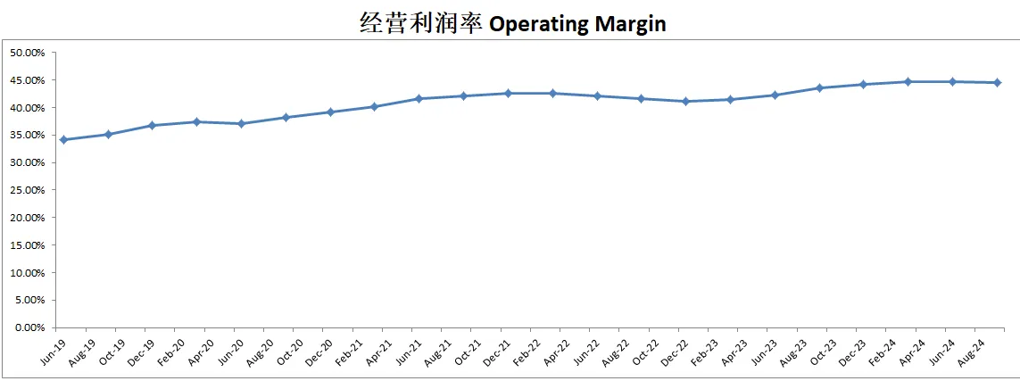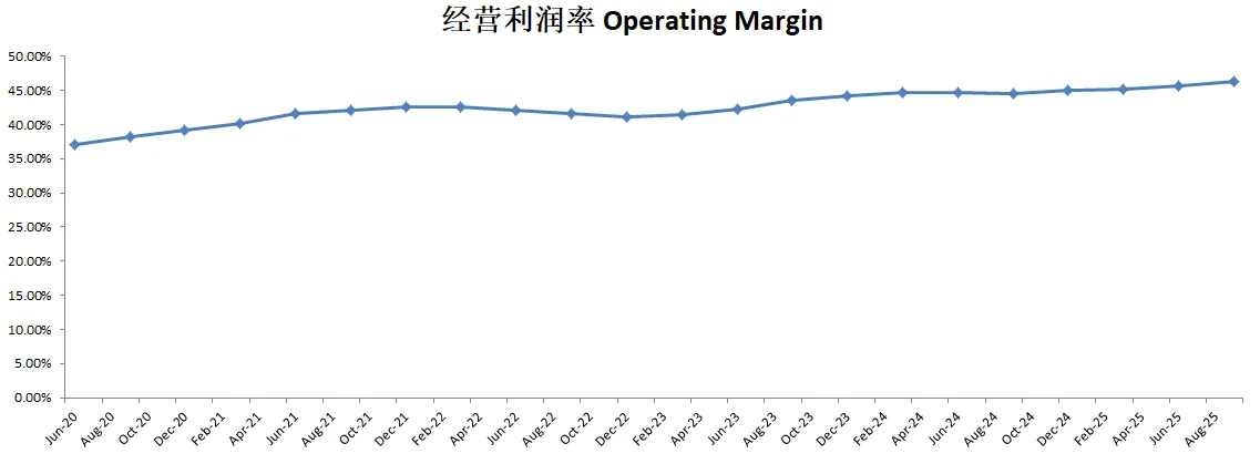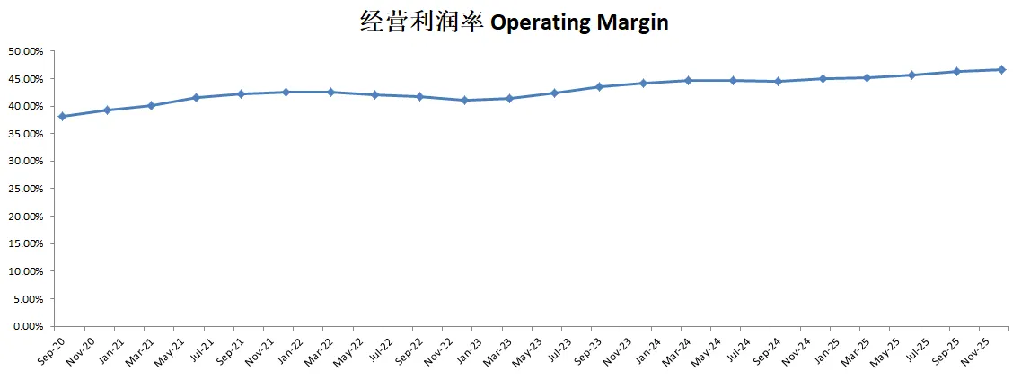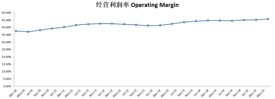-营收刷新新高,经营利润刷新新高,利润率目前已经来到了45.62%