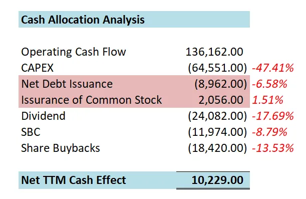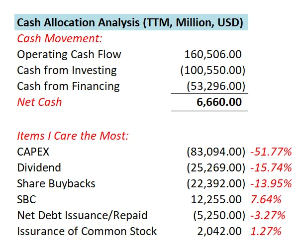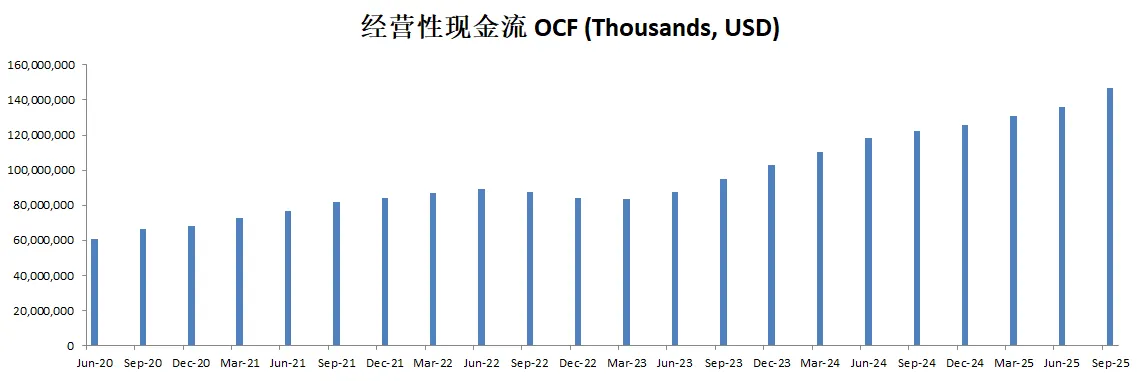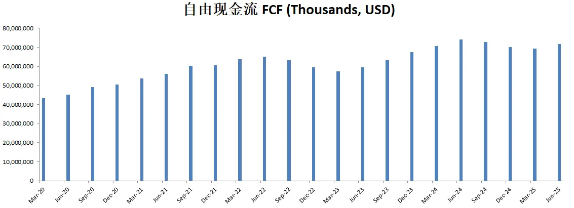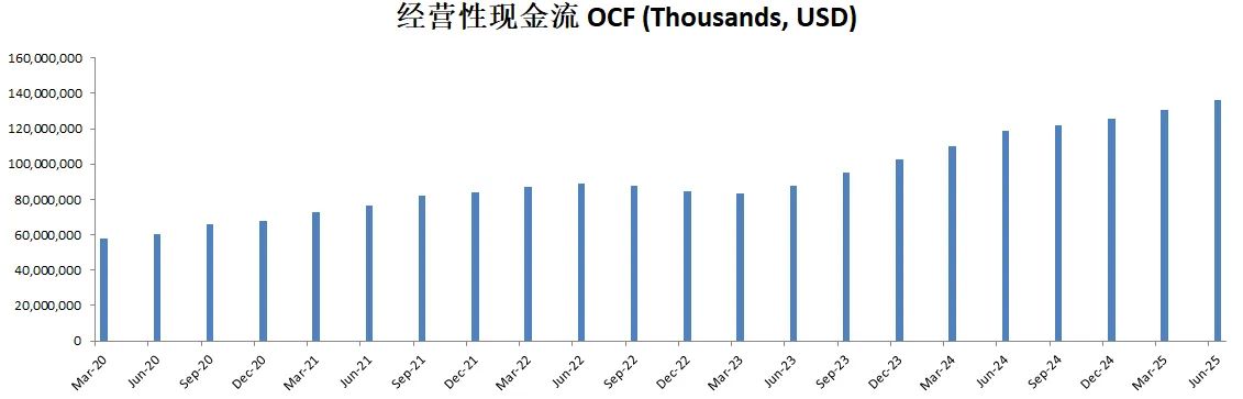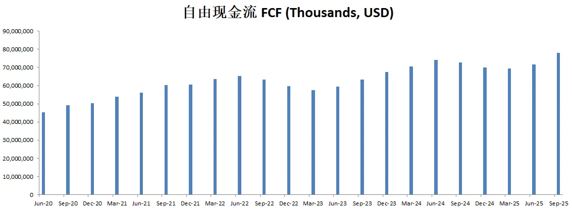 -资本支出(CapEx)和运营成本:资本支出总额为 200 亿美元,反映了对云和 AI 基础设施的持续投资。自由现金流同比下降 7%,主要由于资本支出的增加。