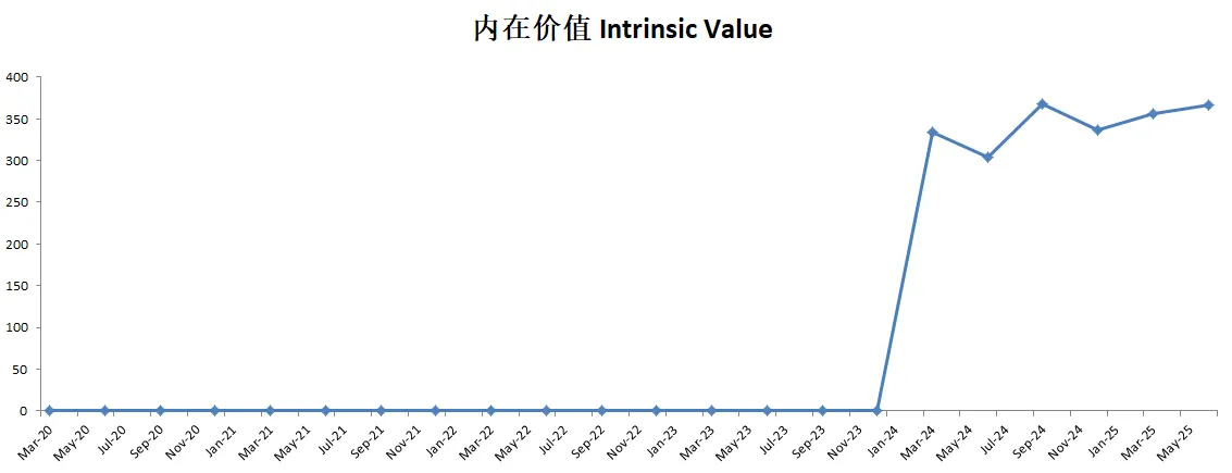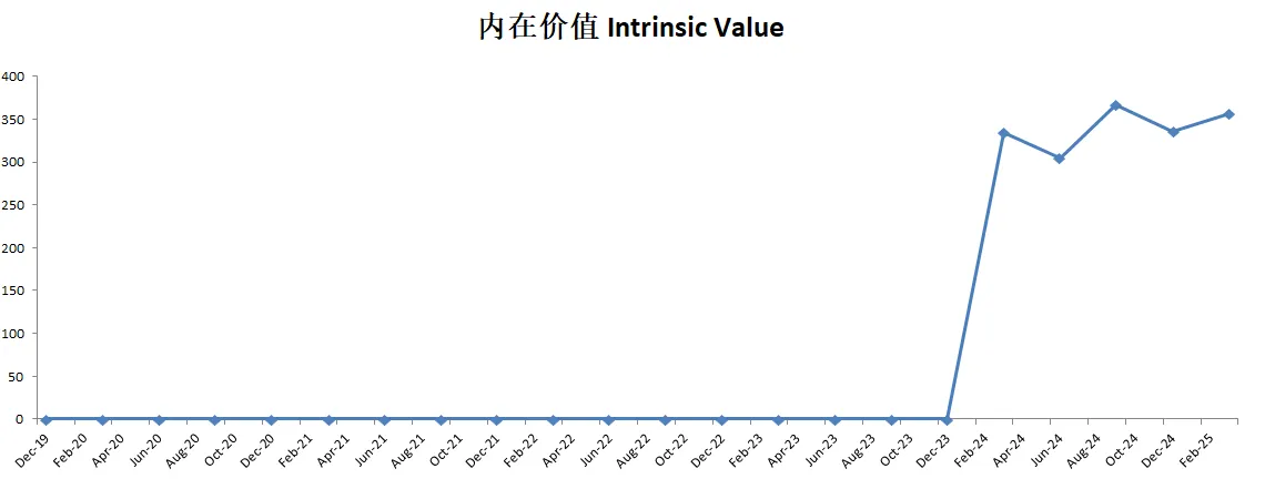-公司最新有效现金流为57.77B,假设按照10.85%的CAGR(5年CAGR为10.85%),合理价算出来为355.87