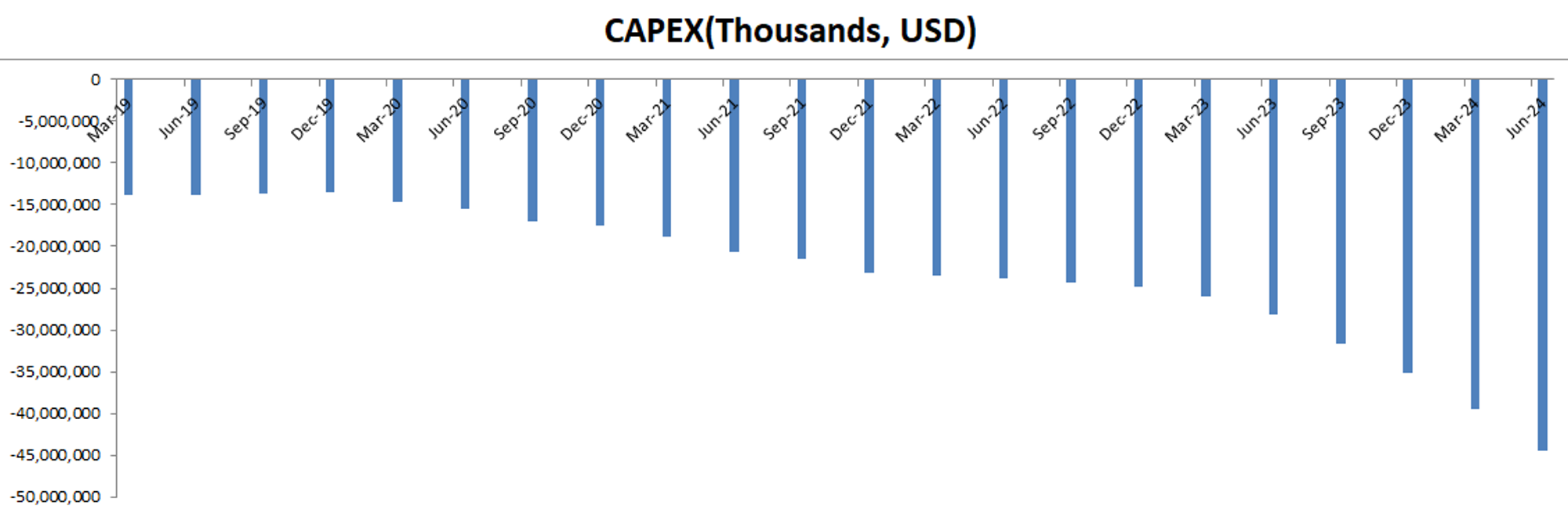 -随着AI竞争愈演愈热,CAPEX也是越来越大,增长惊人