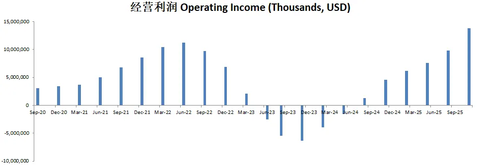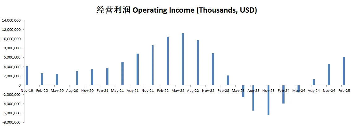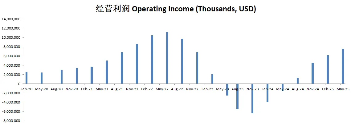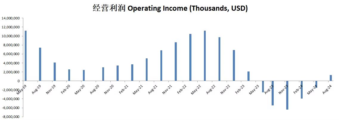 虽然从12个月数据来看,经营利润仍然是亏损,但是美光已经连续2个季度报告正向经营利润了