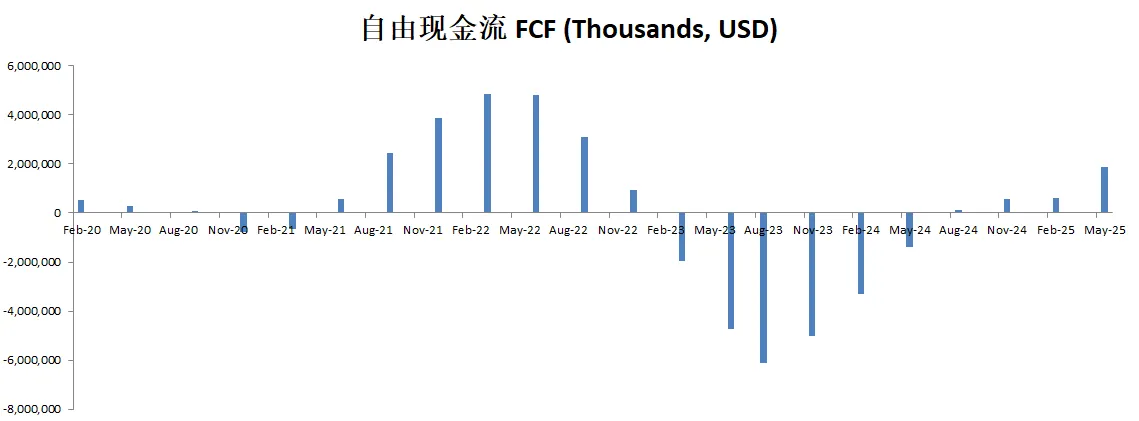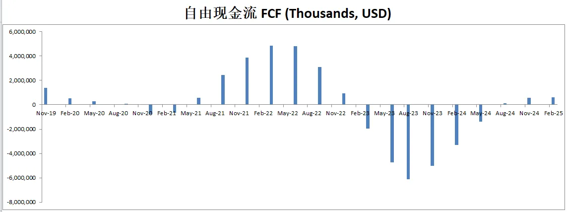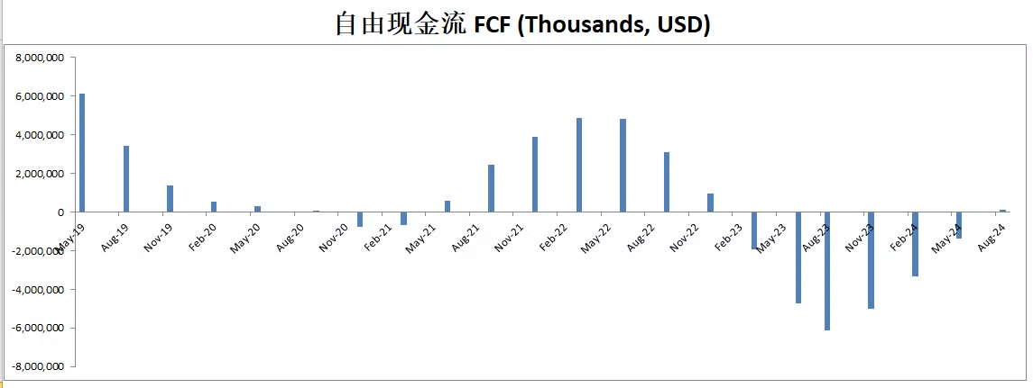 由于巨额的CAPEX,导致FCF目前仍然是负值