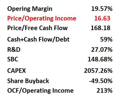 -公司产生现金能力很强,目前OCF是OI的2倍