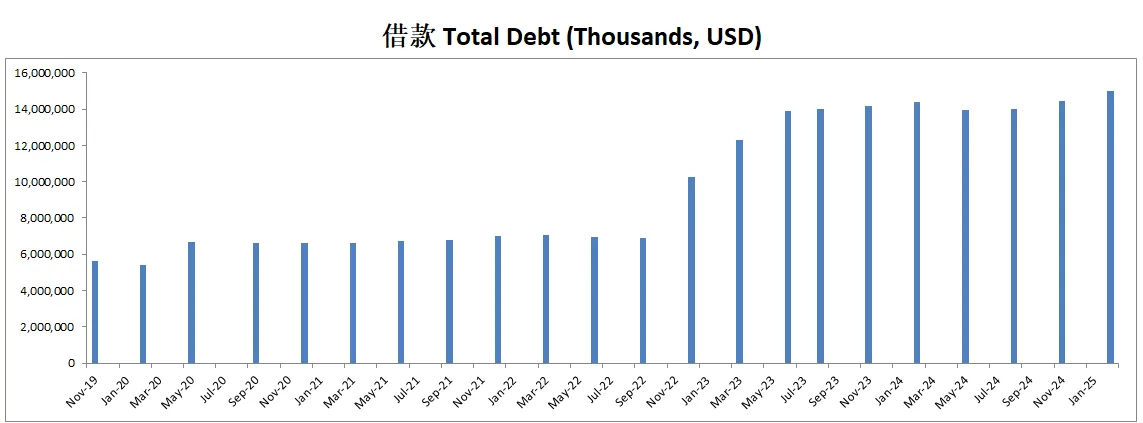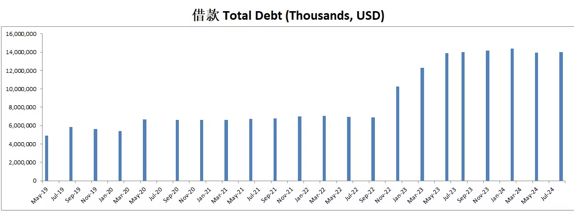 财务健康,总借款13.87B,管理起来压力不算大