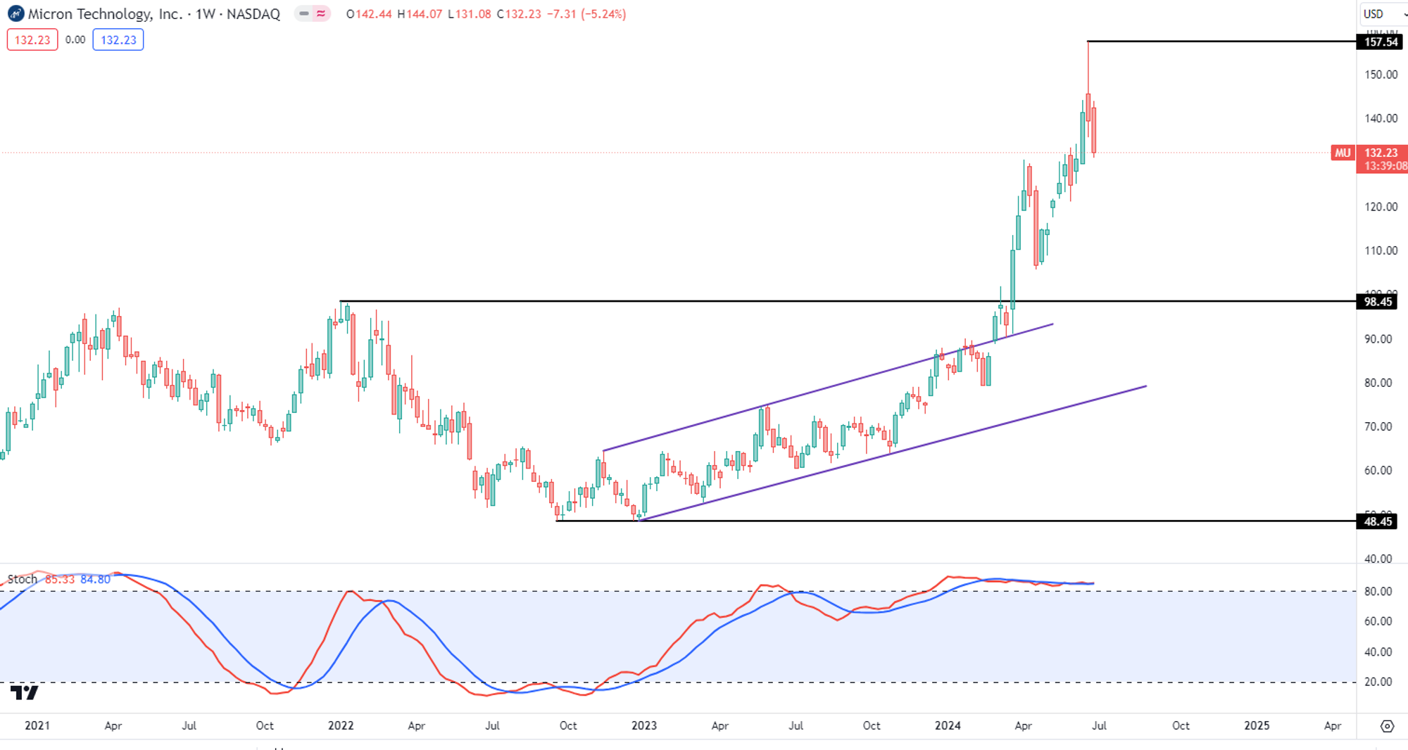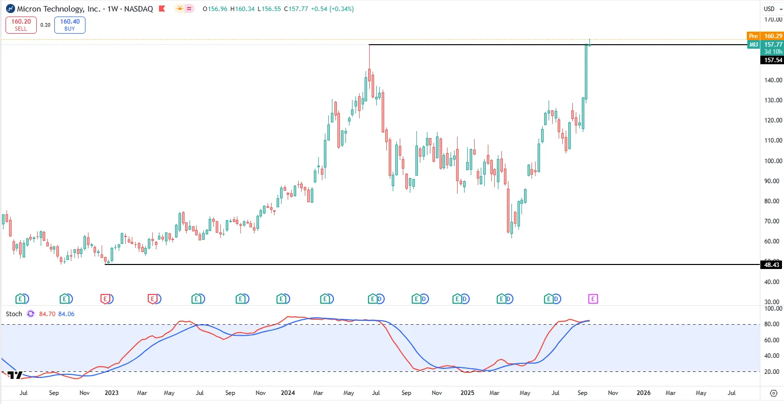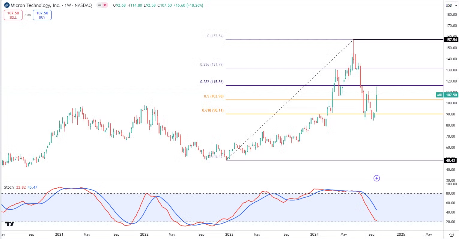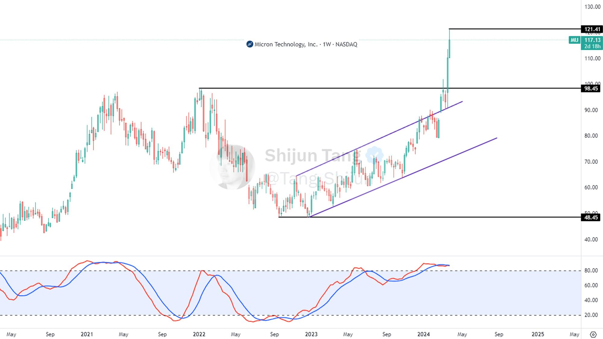 Micron ($MU)几天前发布了最新季度财报,股价也是在当天盘后一根God Candle冲破天际