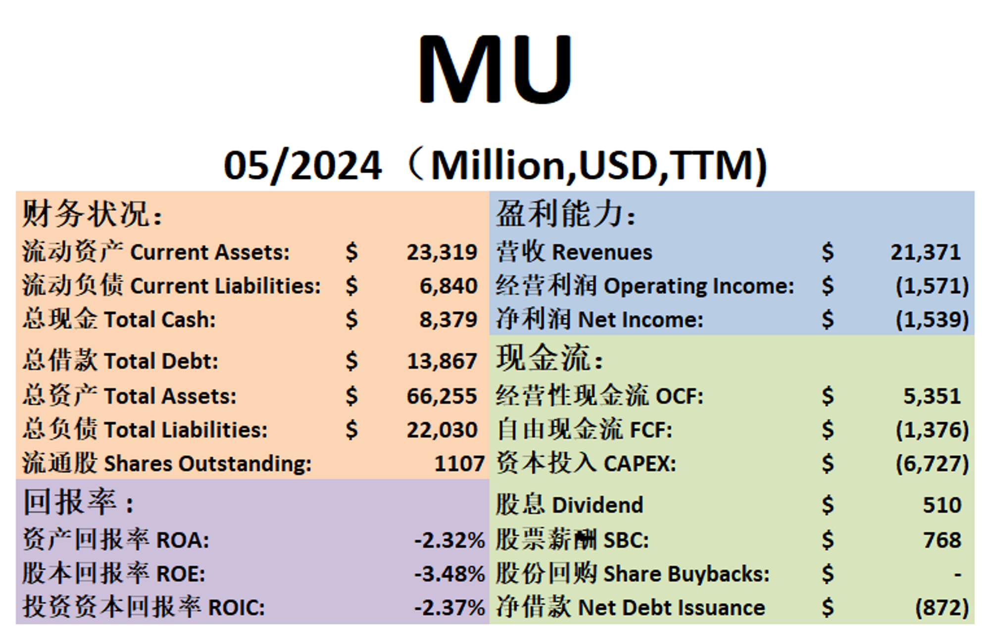 $MU 最新财报一页概览