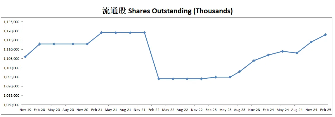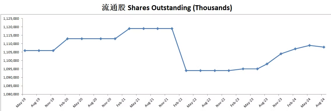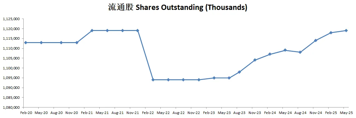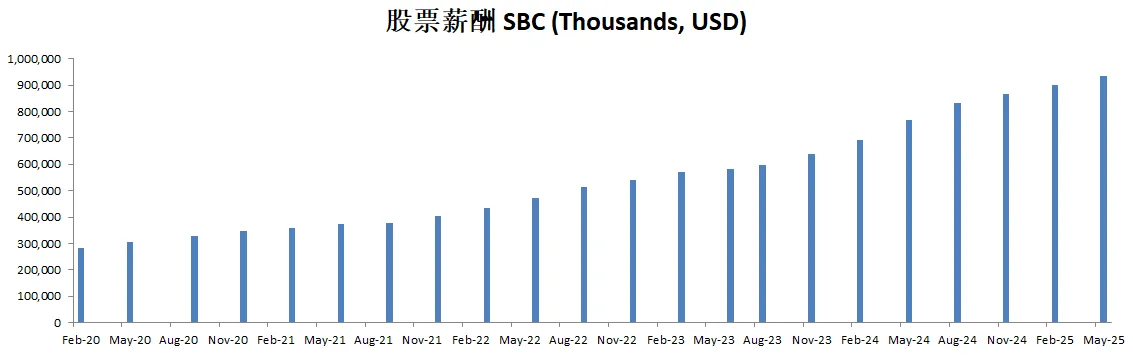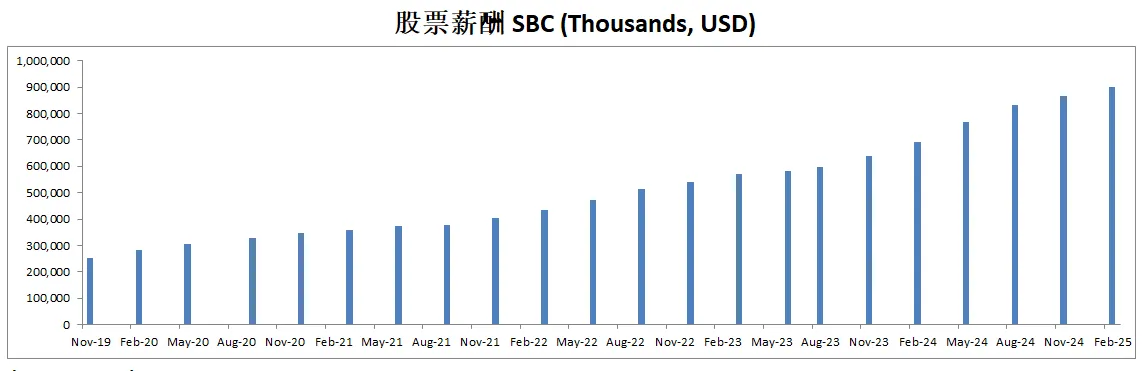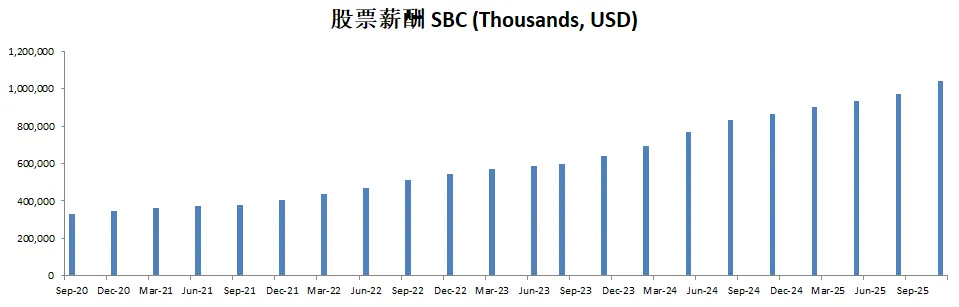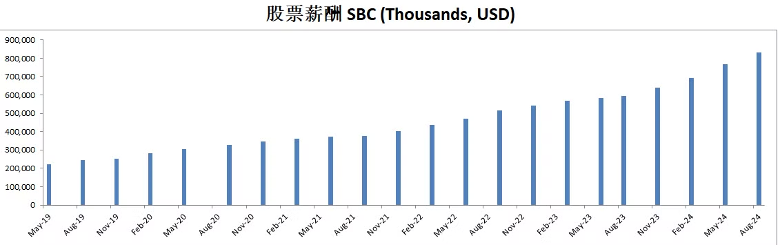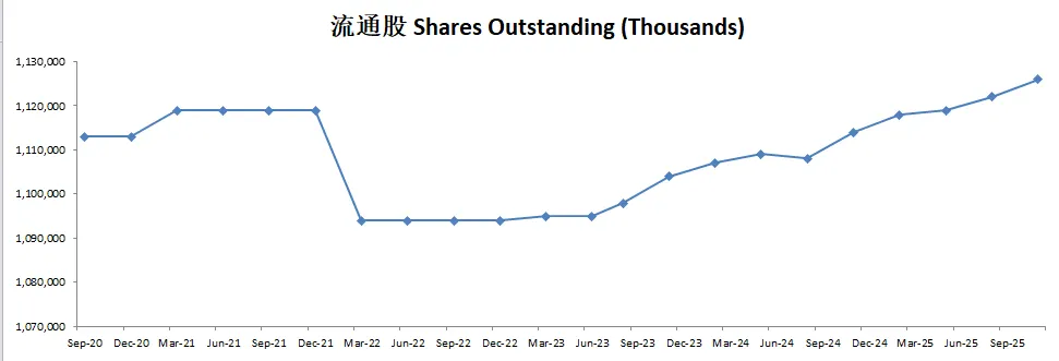 由于持续派发SBC,导致公司流通股有少量增发