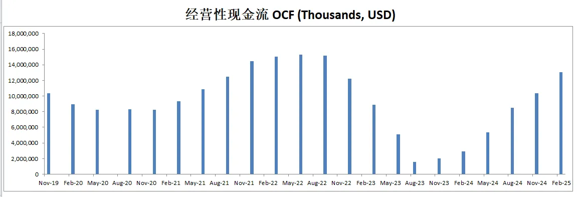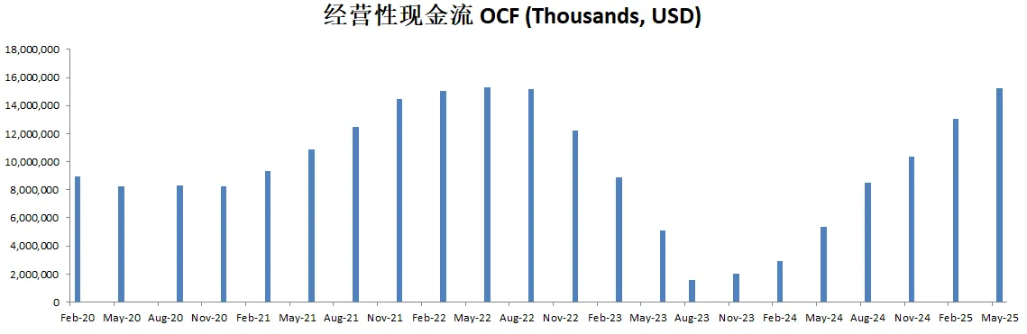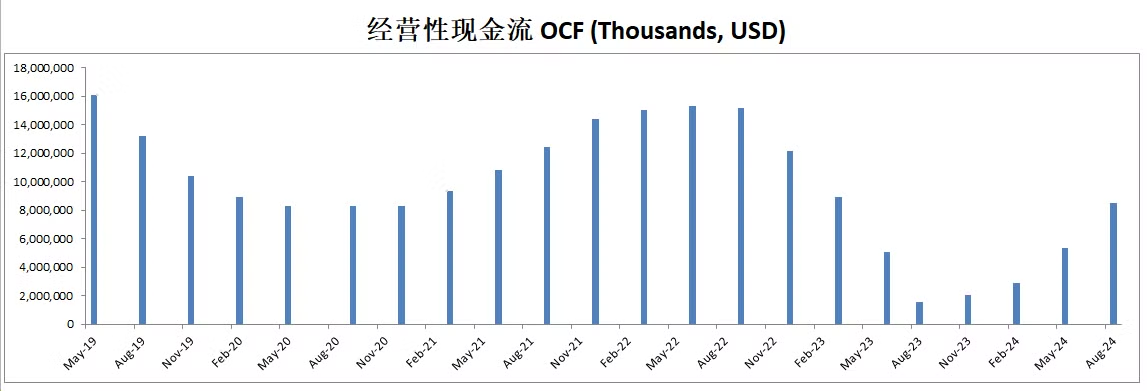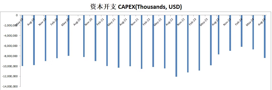 不过最新12个月CAPEX已经只有6B多美元,似乎资本投入在减少