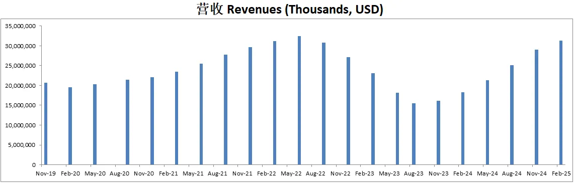 -资本支出 (CapEx): 2024财年的资本支出为81亿美元,预计2025财年将显著增加,重点是新建晶圆厂和HBM投资。预计2025财年的资本支出将约为收入的35%。