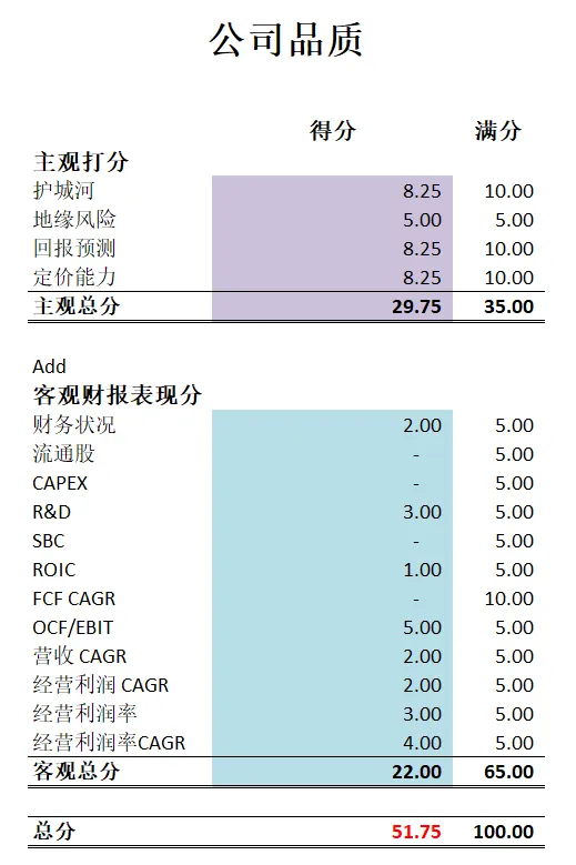 公司品质打分