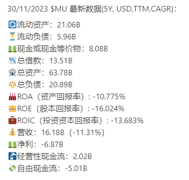 美光科技(Micron)随着半导体市场进入寒冬期,回报率和盈利能力受影响严重,财务健康