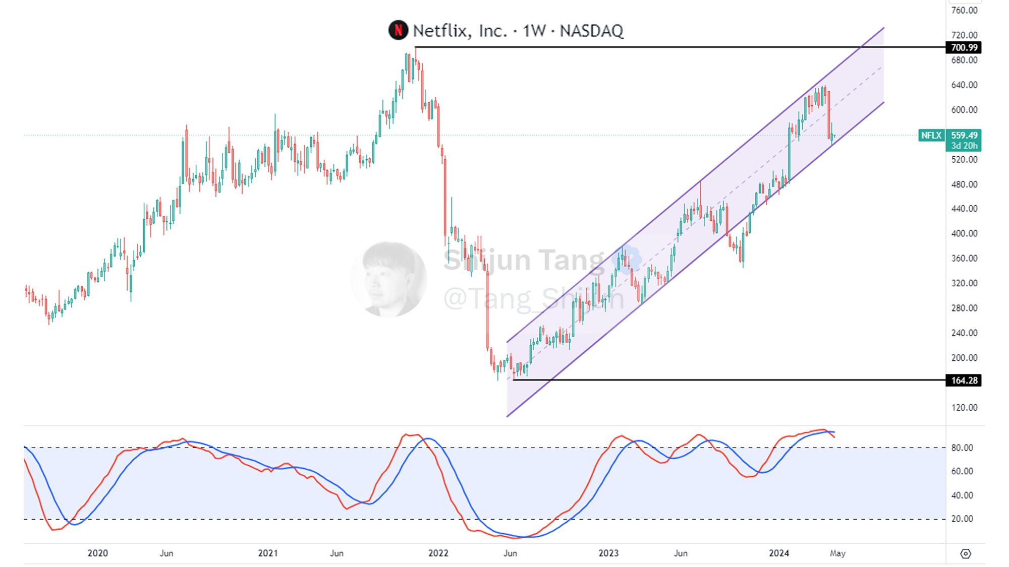 网飞 Netflix( $NFLX )自从22年6月以来,已经一度涨了324.57%,翻了4.32倍