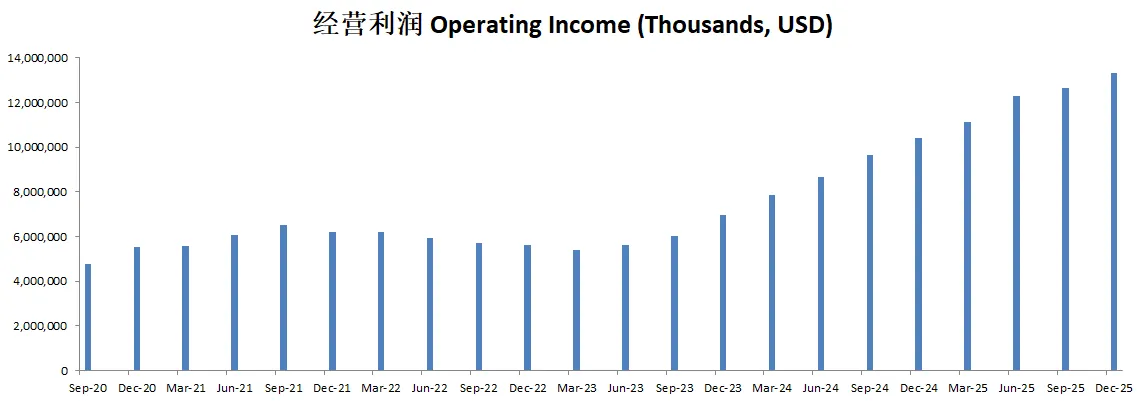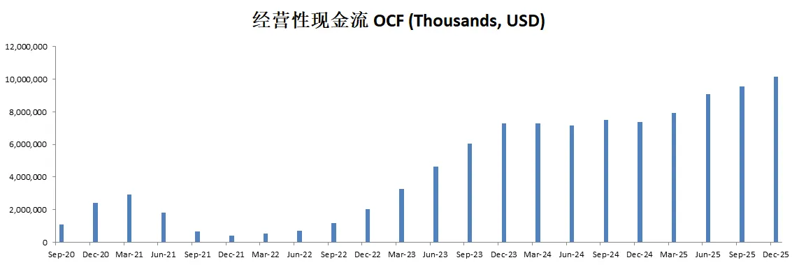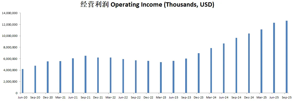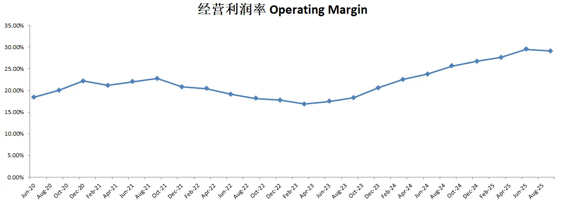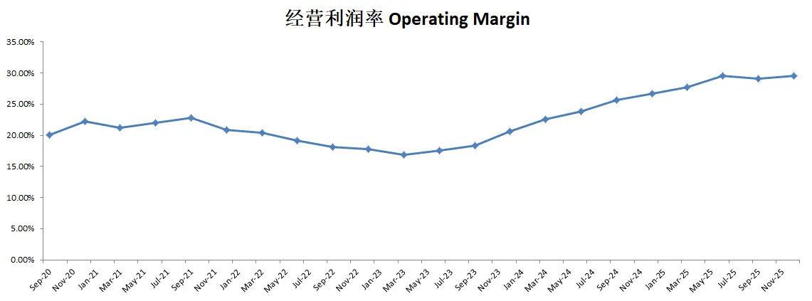 盈利能力同样稳定增长,营收,经营利润,净利,经营性现金流,自由现金流全部刷新新高