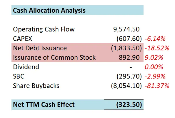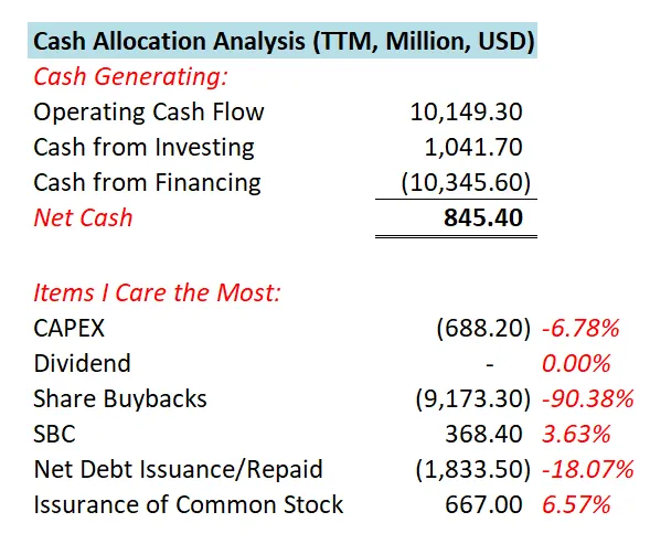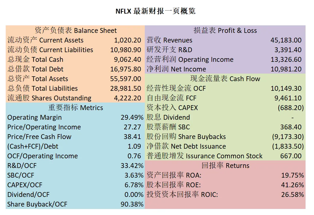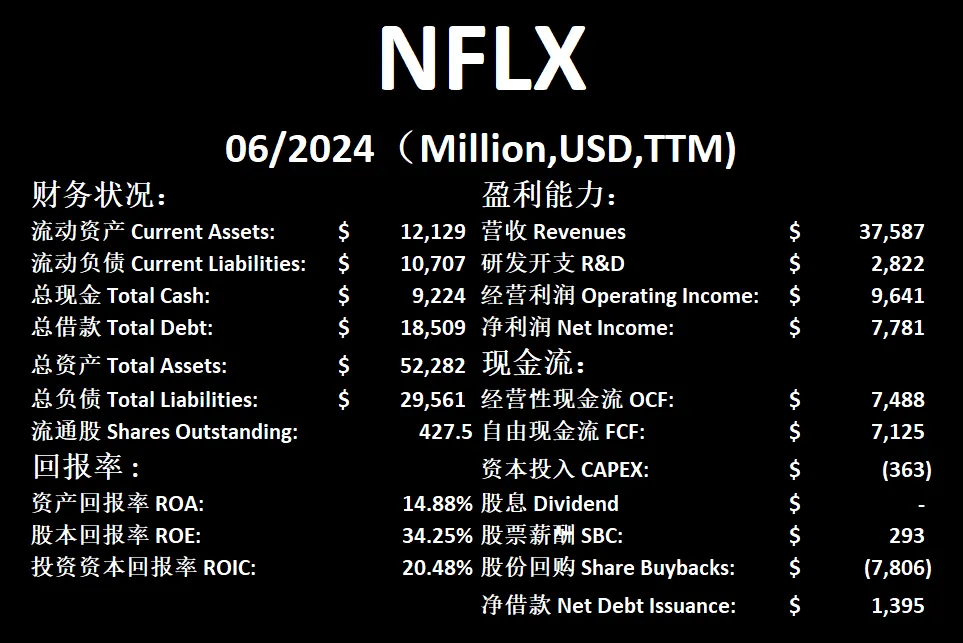 -CAPEX只有FCF的4.98%,Netflix似乎完全不需要资本投入,就能满足增长,这里是要加分的
