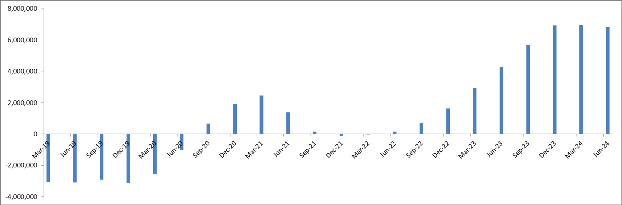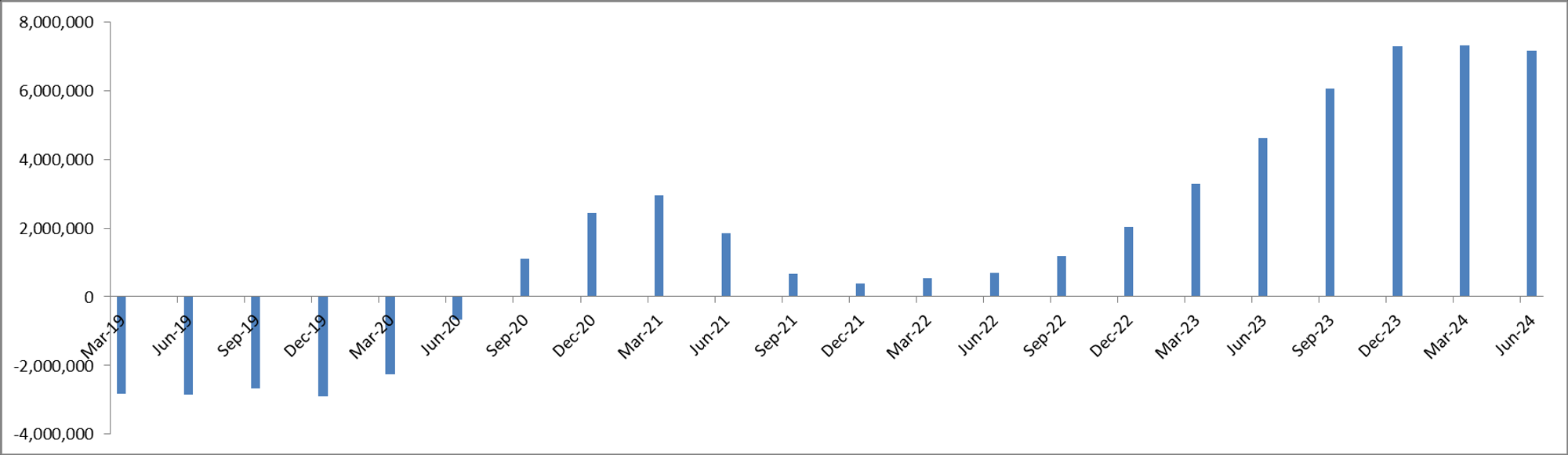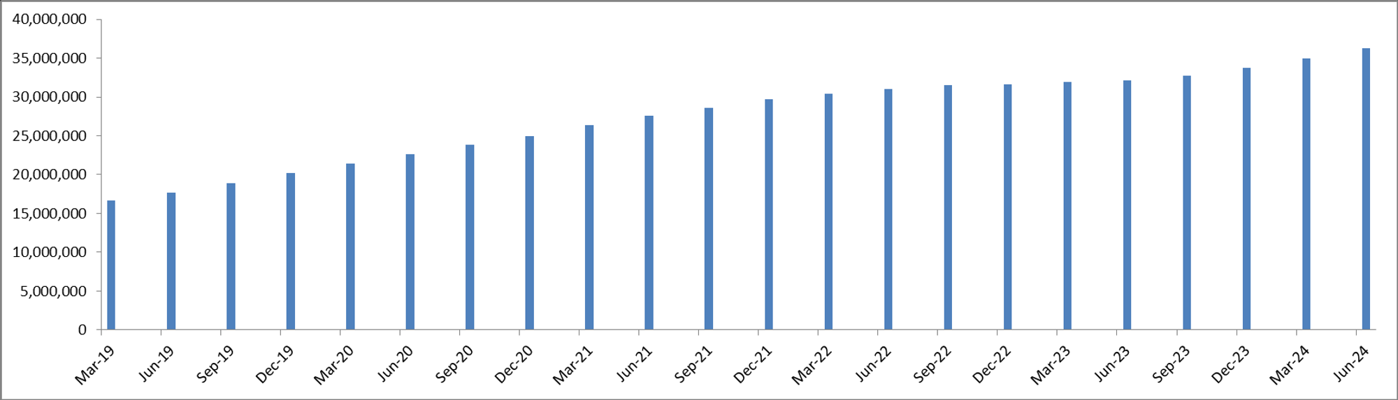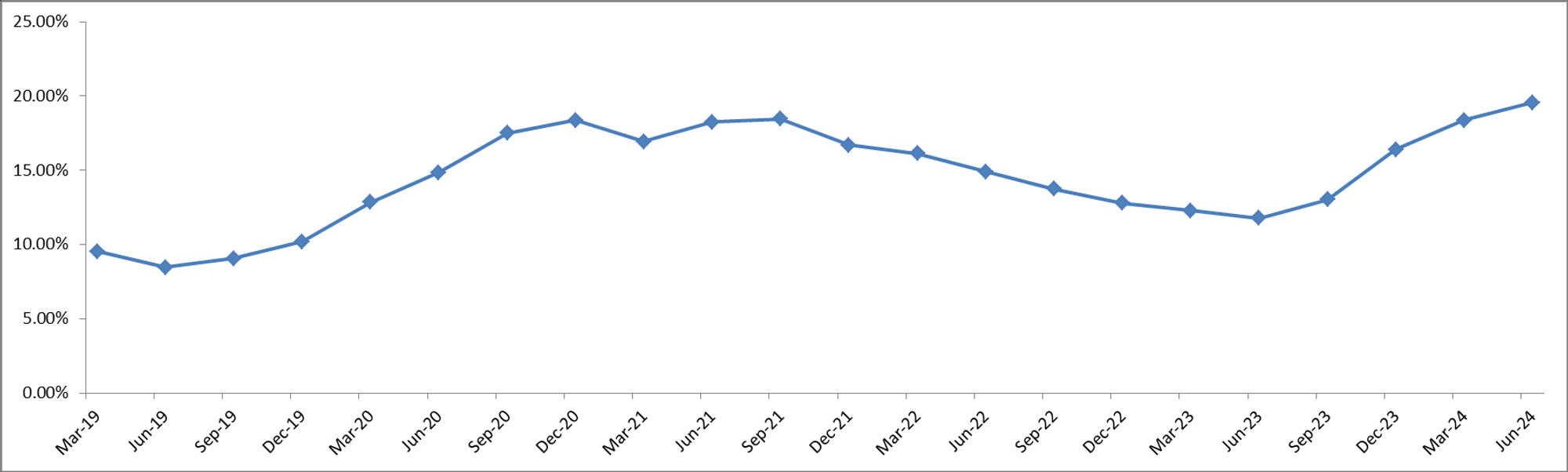 回报率相较于上个季度都有所增长,最新ROIC已经来到了24.53%,5年CAGR有7.37%