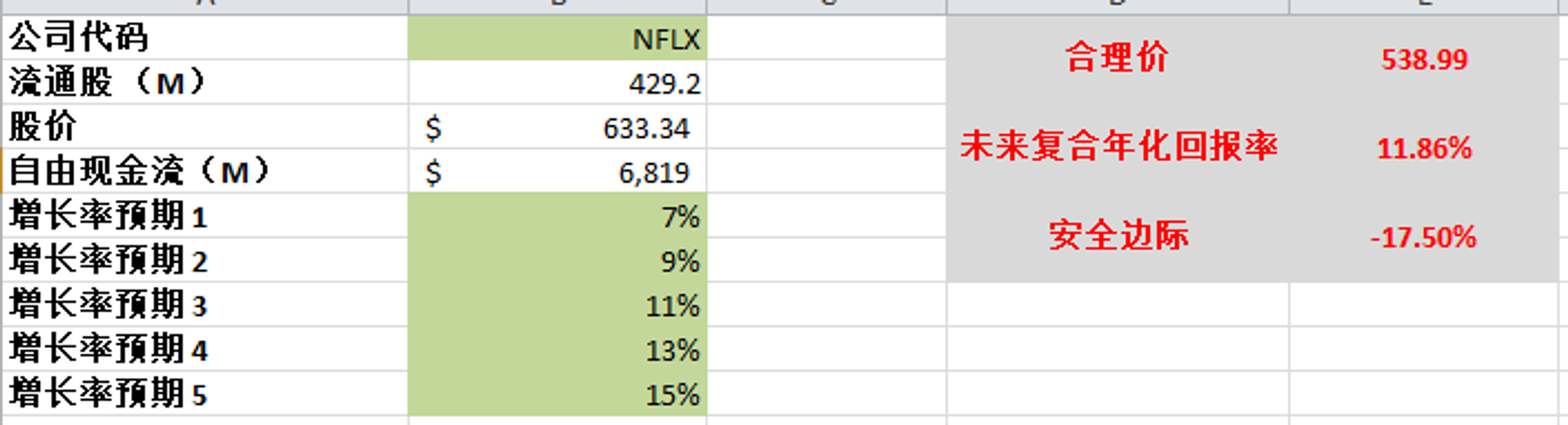 -公司内在价值也在飙升,所以现在的合理价来看,它的股价还真没有说特别贵。我目前仍然没有建仓它,可能也是因为在估值上来看,我总觉得亏了。不过从理性的角度上来看,其实目前股价差不多也就是NFLX的内在价值。