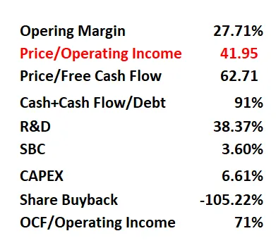 -基本面属性可以说是相当的完美,属于我特别喜欢的公司,高利润率,CAPEX和SBC极低