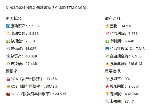 Netflix 当前仅占其估算的全球市场收入机会的 6%,未来增长空间巨大。广告变现、内容投资、游戏和精选体育直播将成为主要增长驱动。通过持续改进内容和服务,公司目标是逐步扩大全球家庭渗透率并保持盈利能力。