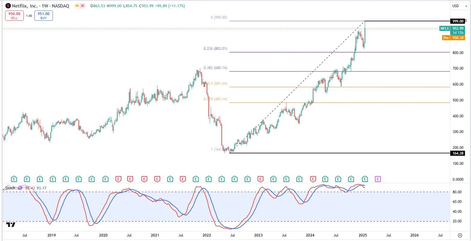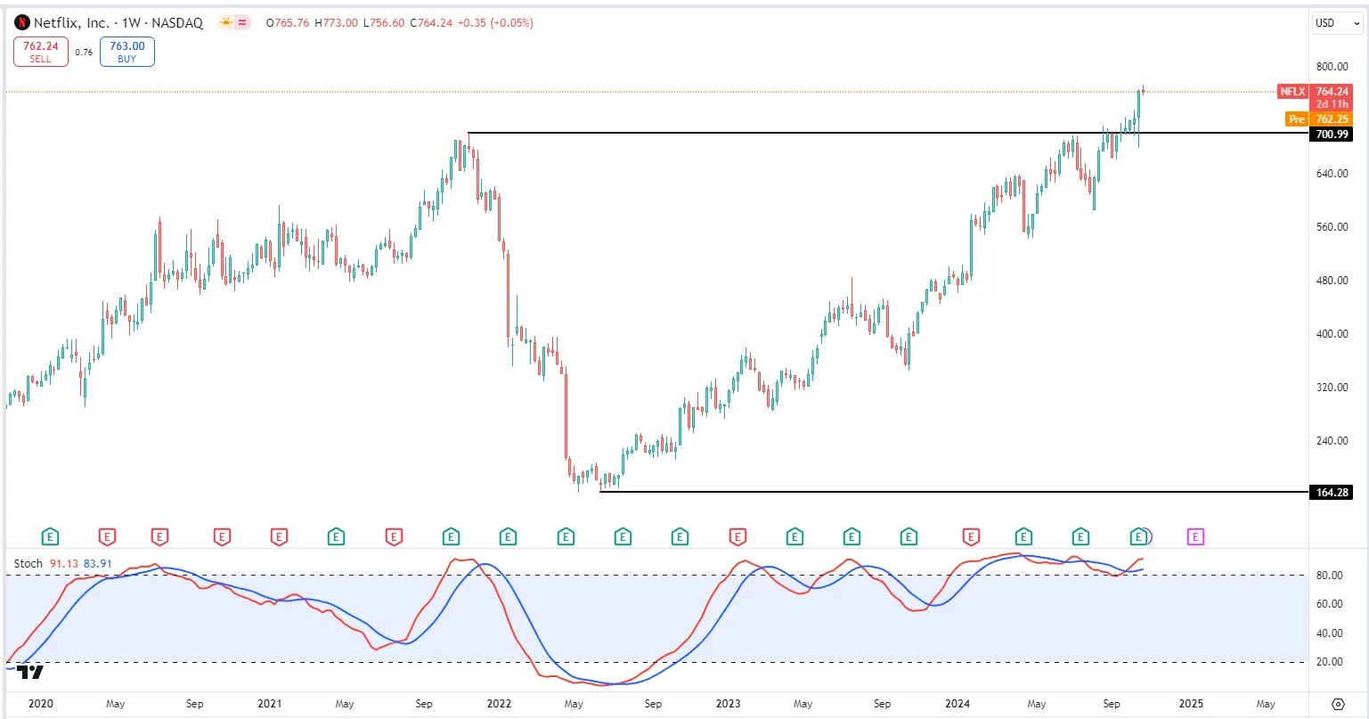 网飞如果能保持目前的增长势头,距离历史峰值700.99,也不远了