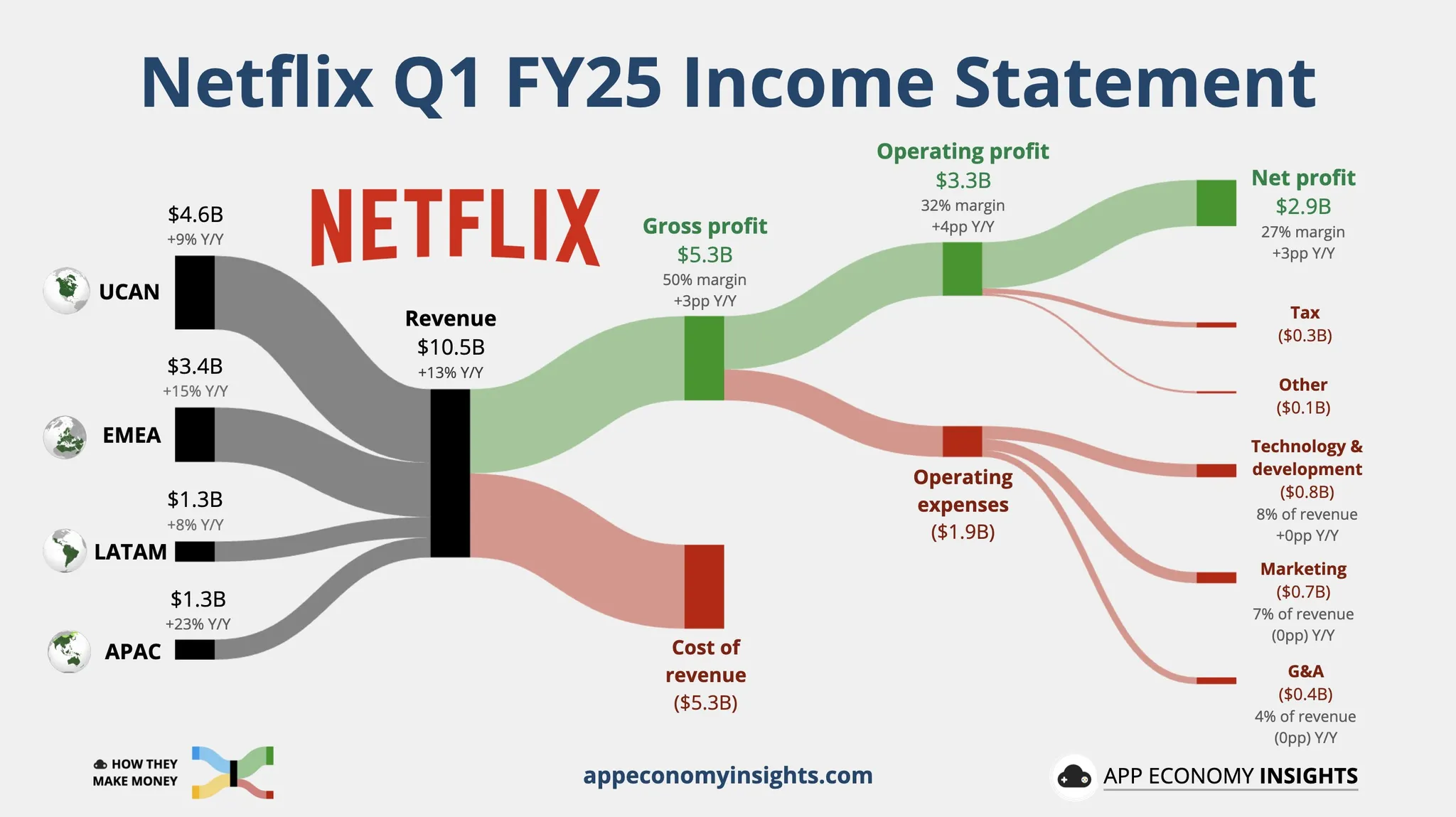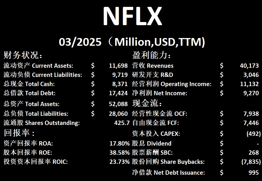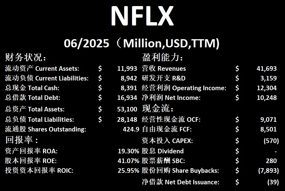 用户参与度是推动 Netflix 收入和利润增长的核心指标,平均用户每日观看时长约为 2小时。Netflix 保持 “流媒体优先” 策略,偶尔通过 IMAX 等影院形式进行差异化发行(如《纳尼亚传奇》)。未来的投资将聚焦于剧集制作、区域内容、直播活动和版权合作,以进一步扩大用户基础和收入机会。
