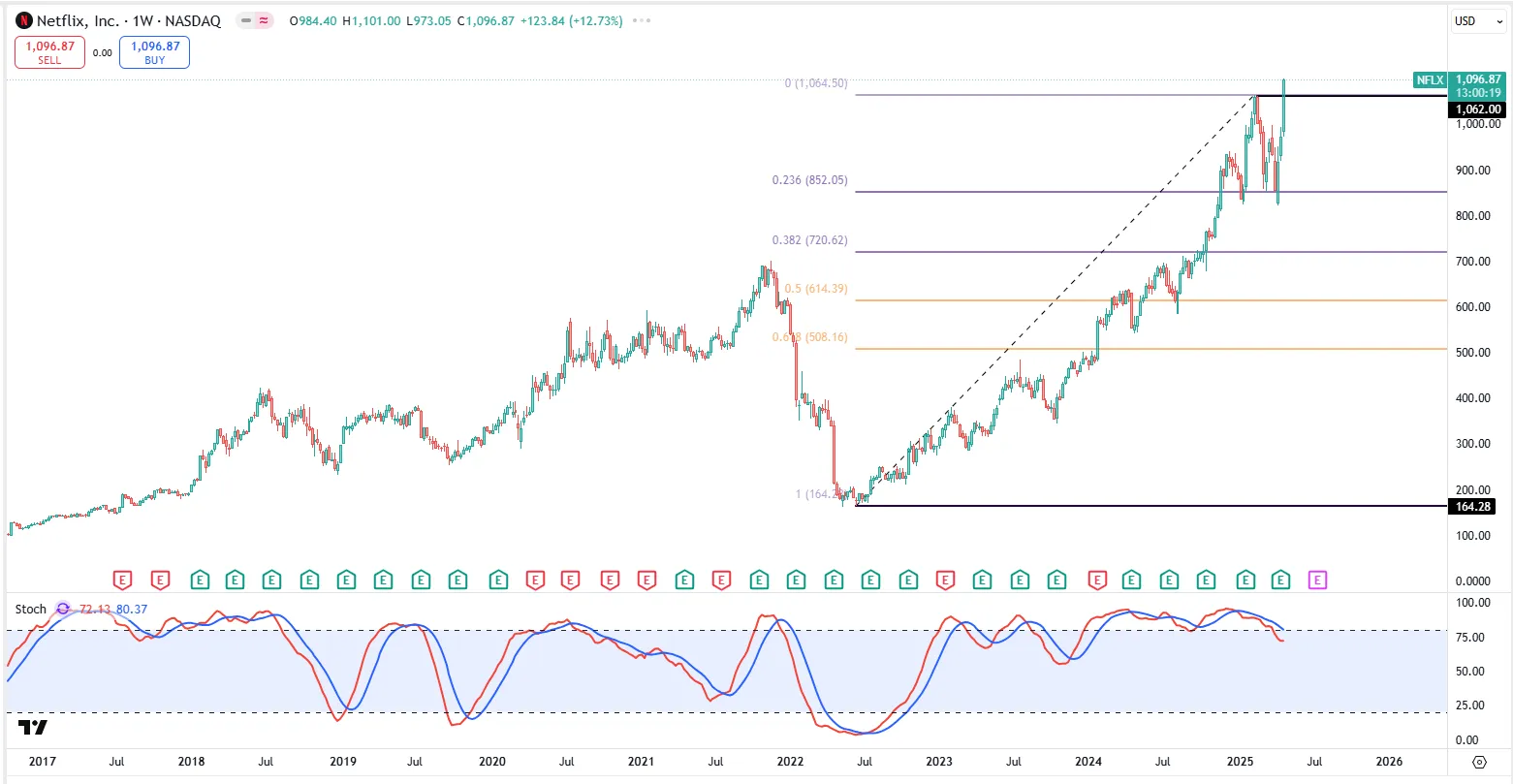 网飞 Netflix($NFLX)这波牛市已经一度翻了3.88倍
