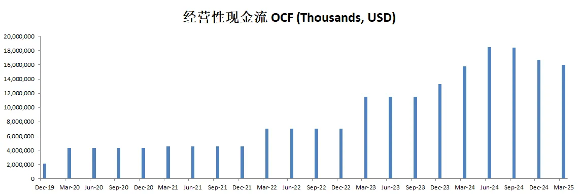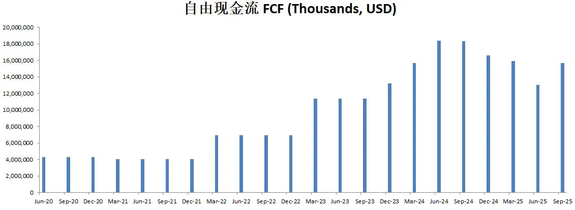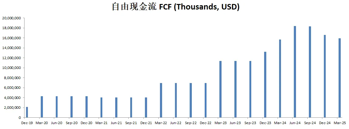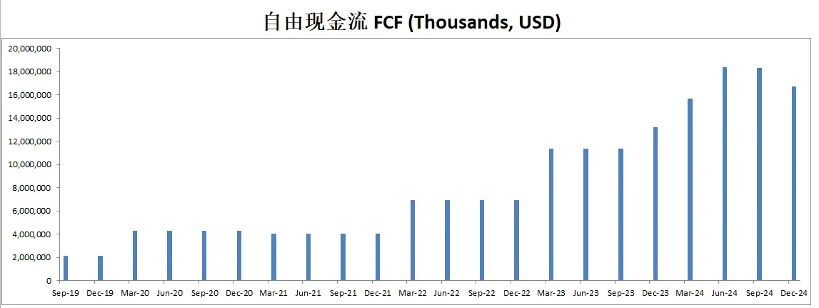 FCF刷新新高,来到了15.71B,5年来CAGR有69.14%