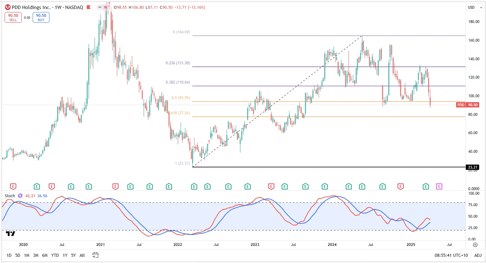 -公司股价重新测试Fibonacci 0.5-0.618线黄金回调区间