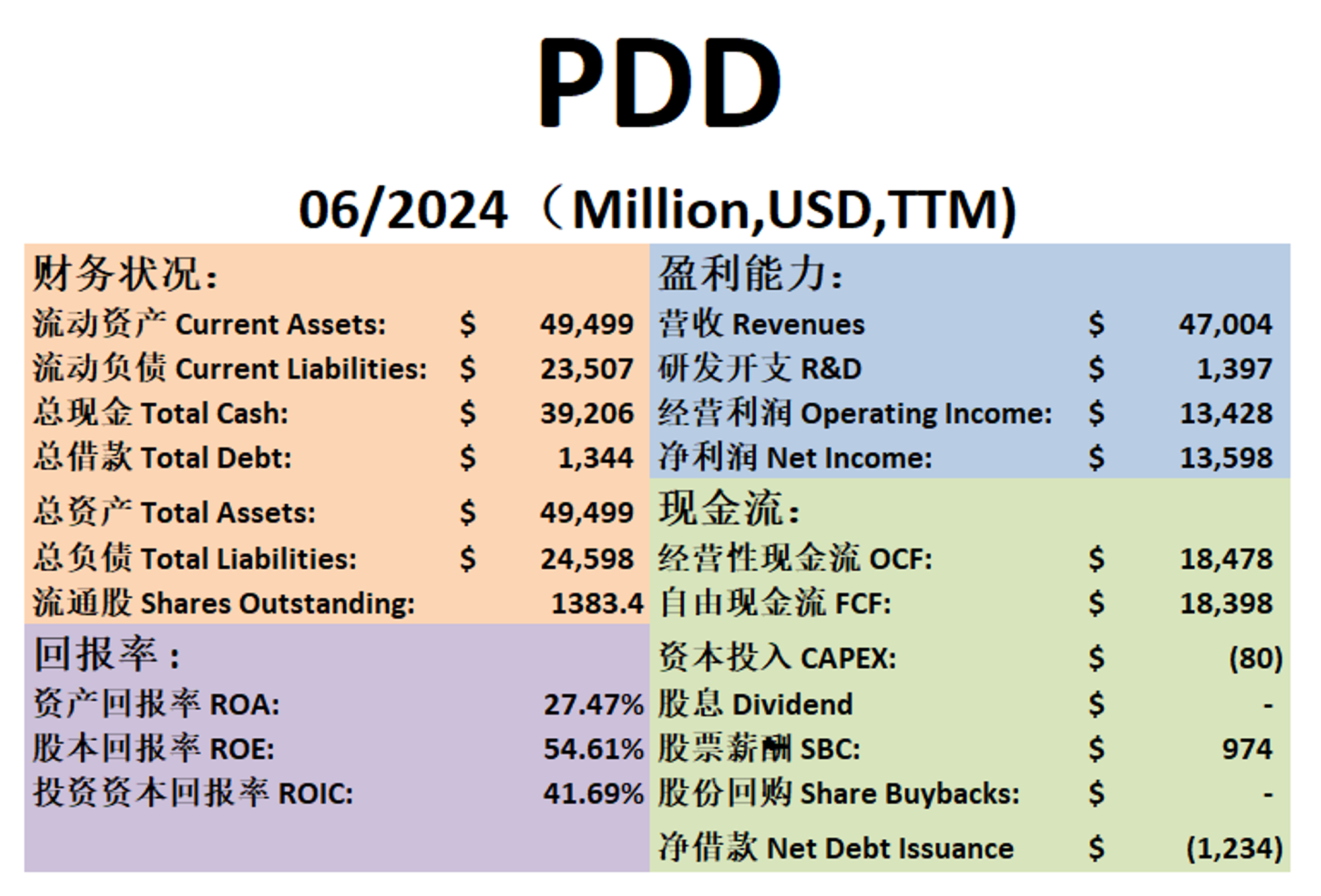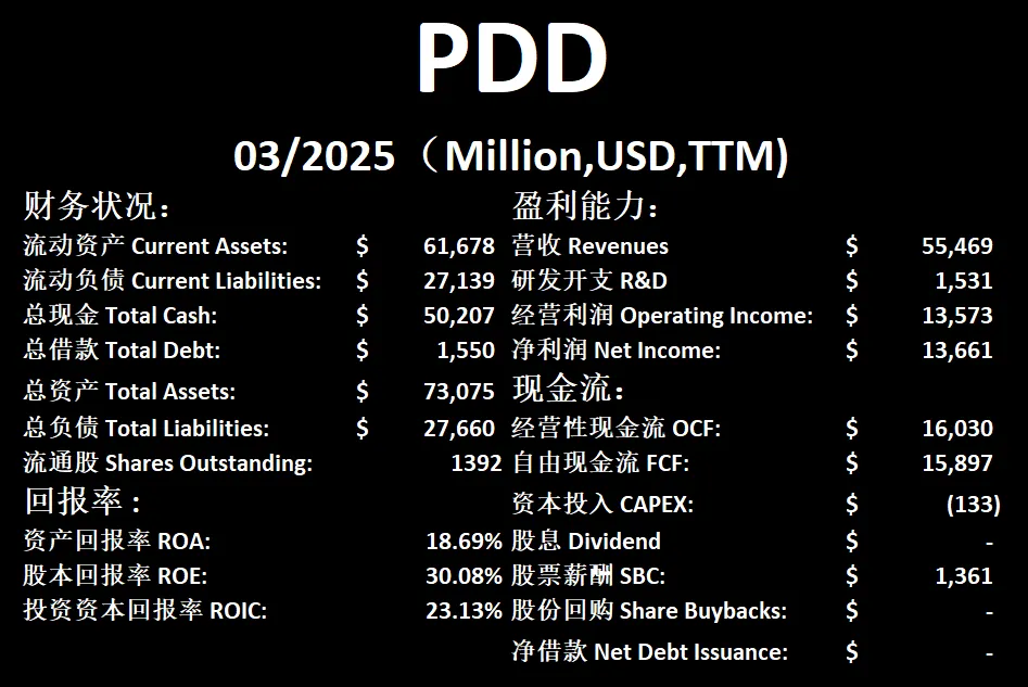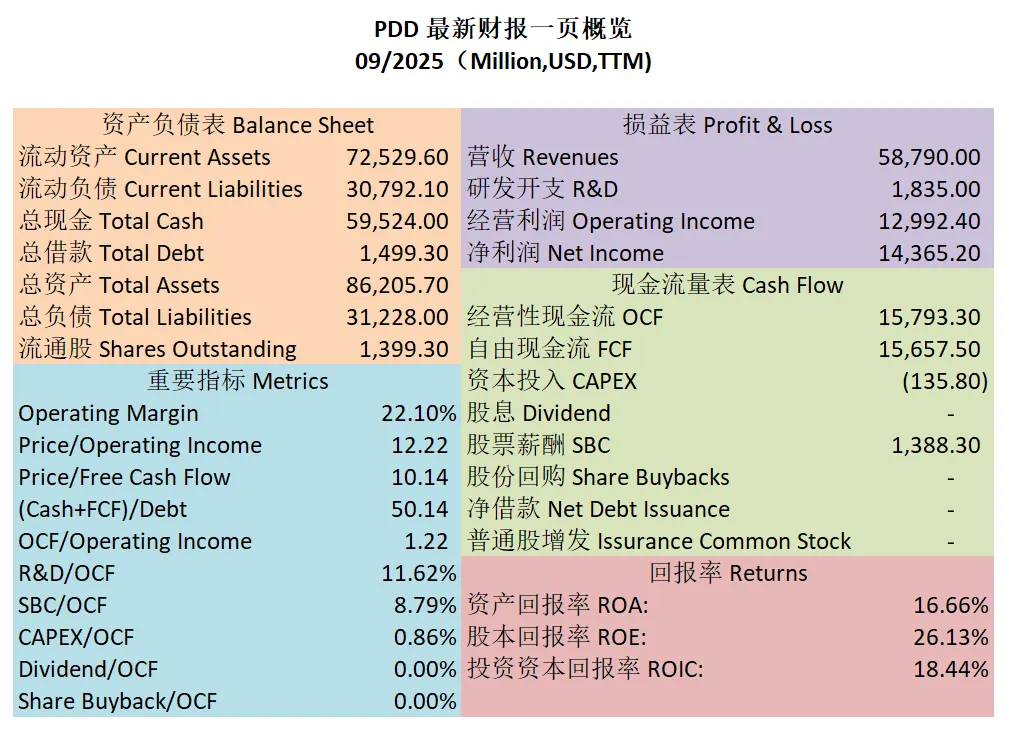 $PDD 最新财报一页概览