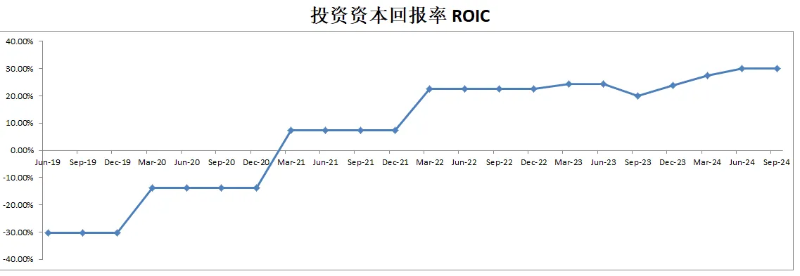 ROIC 刷新新高,来到了37.06%,表现亮眼,很难想象,公司21年Q3季度的时候ROIC还是负的