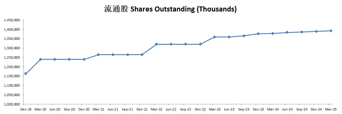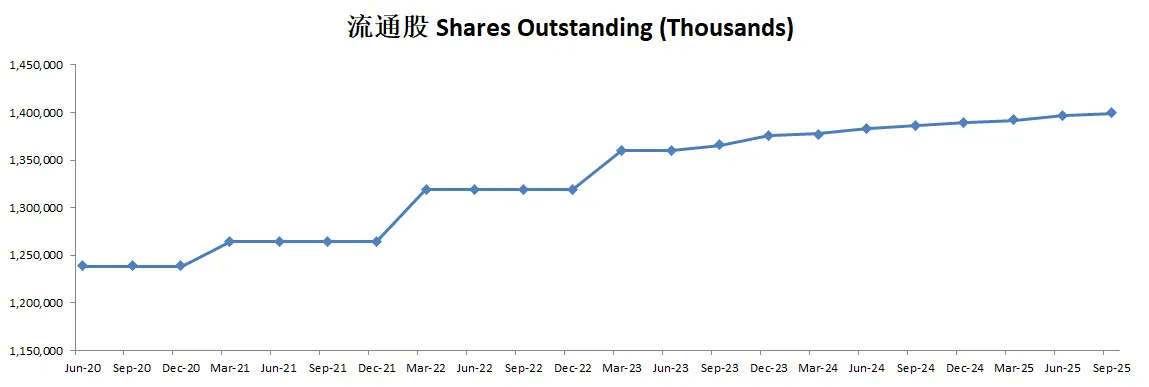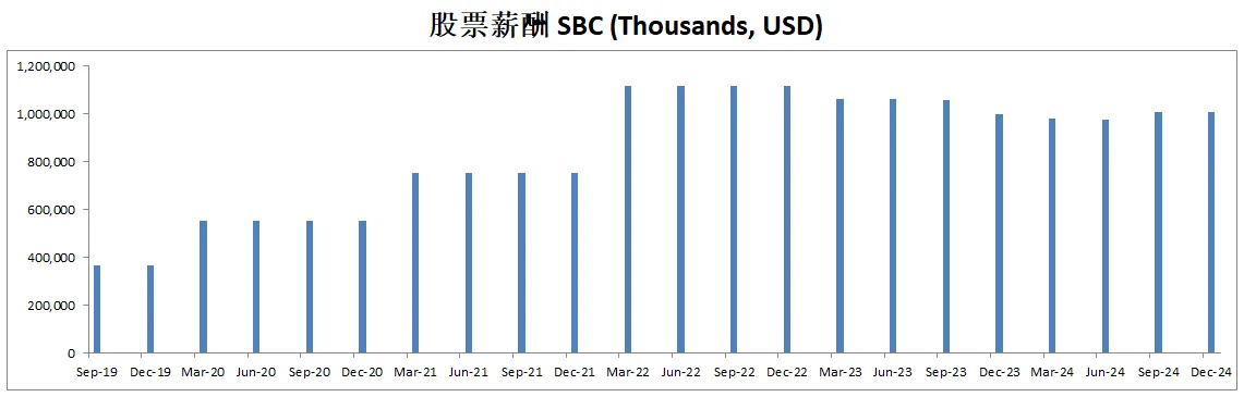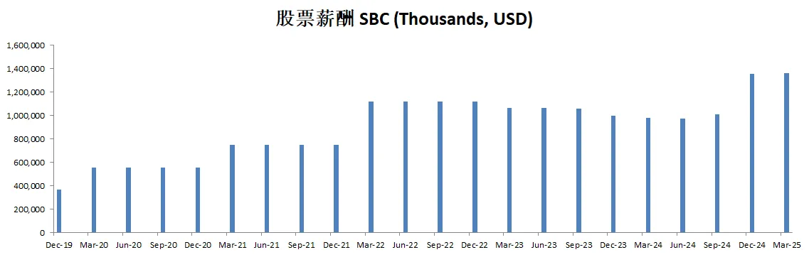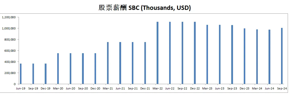 由于SBC,导致公司流通股有少量增加