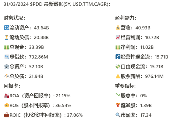 今天我们来研究下,截至24年3月,拼多多的表现如何