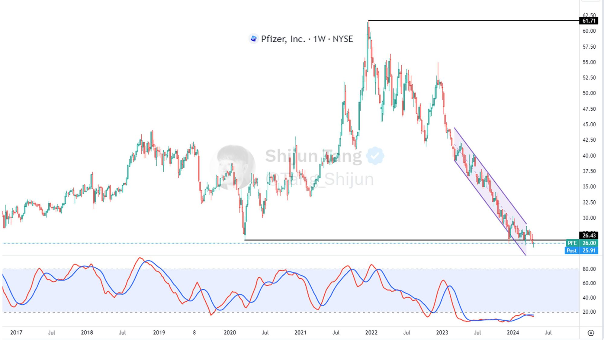 辉瑞 Pfizer( $PFE )自从21年以来,一度跌了59.16%