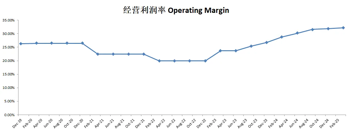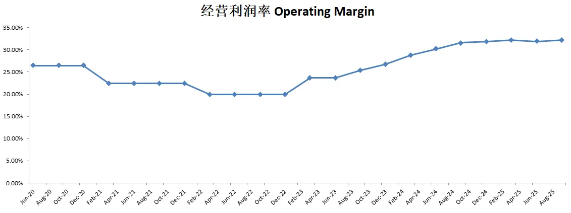 -经营利润刷新新高,利润率有32.19%,仍然很高