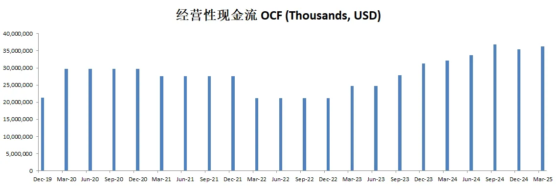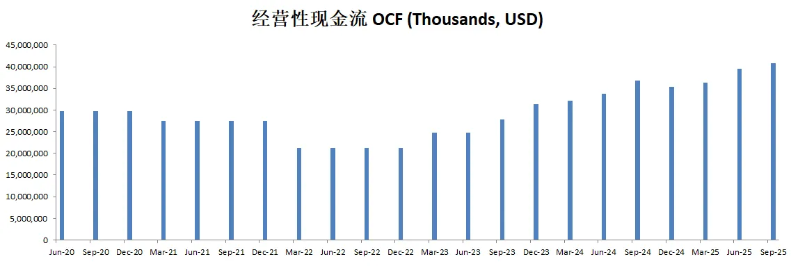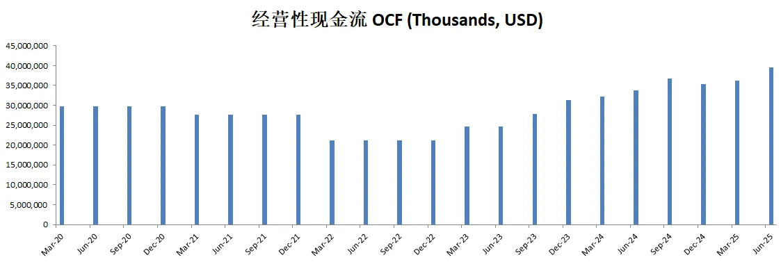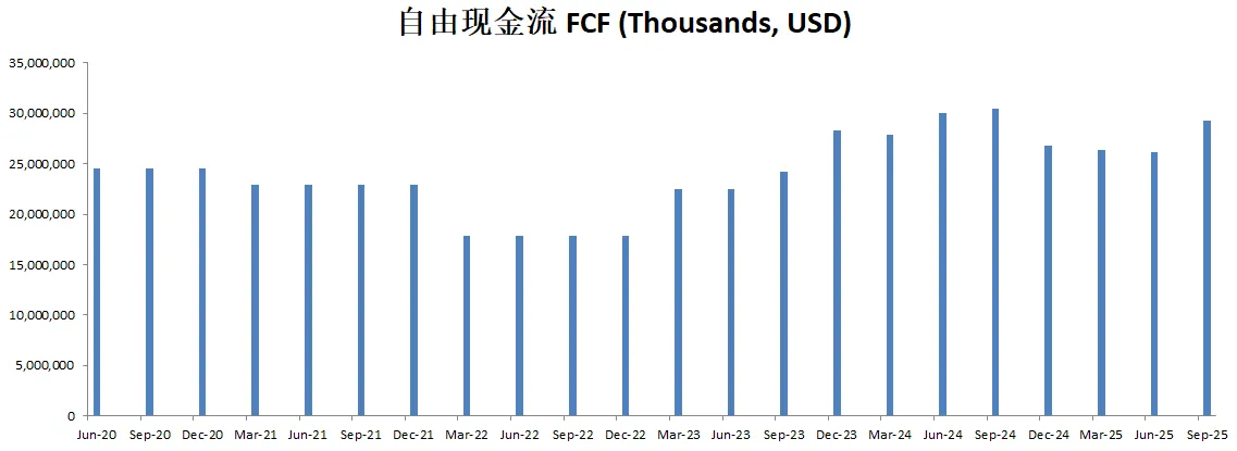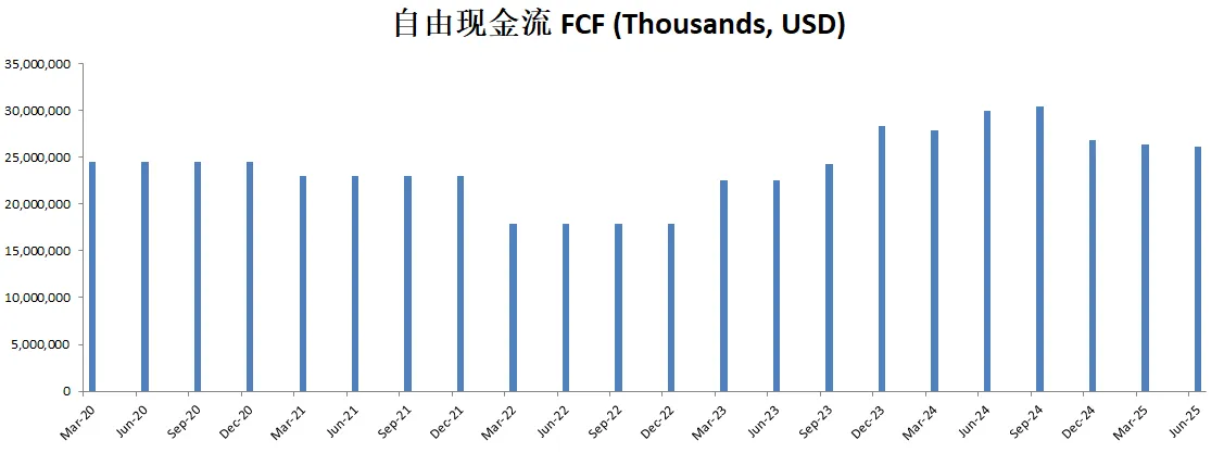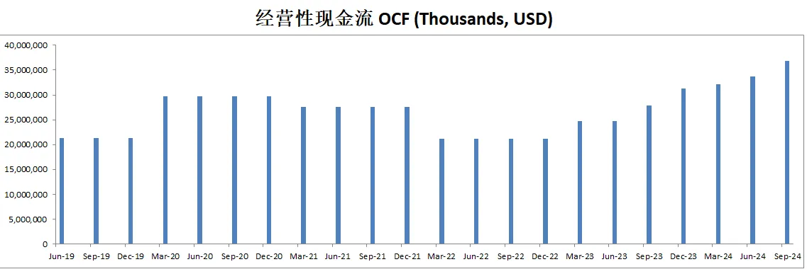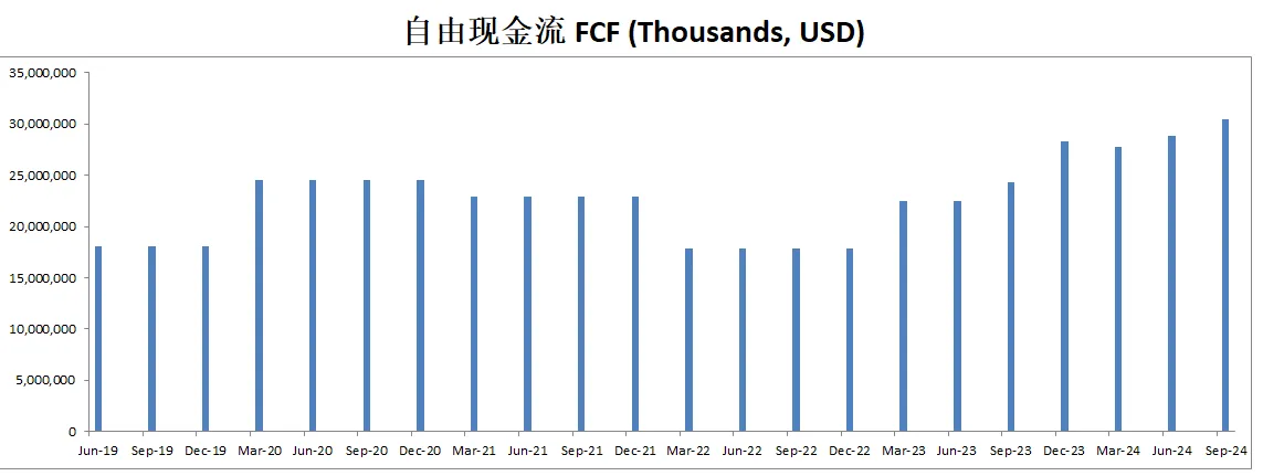 值得关注的是,自由现金流表现亮眼,最新有30.61B,5年CAGR28.31%
