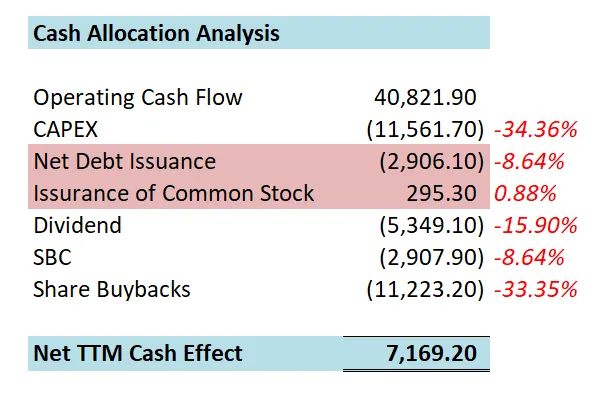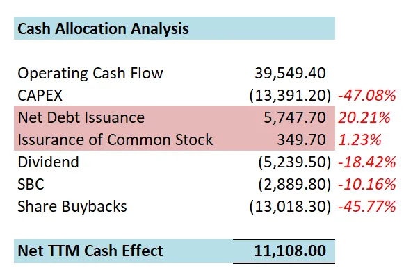 🟢绝大部分现金用于回购,占FCF 38.55%,我同意在目前价位大力回购股份