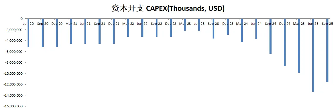 -CAPEX最近2个季度陡然突增,可能是受到阿里的影响,也开始大量投资数据中心了