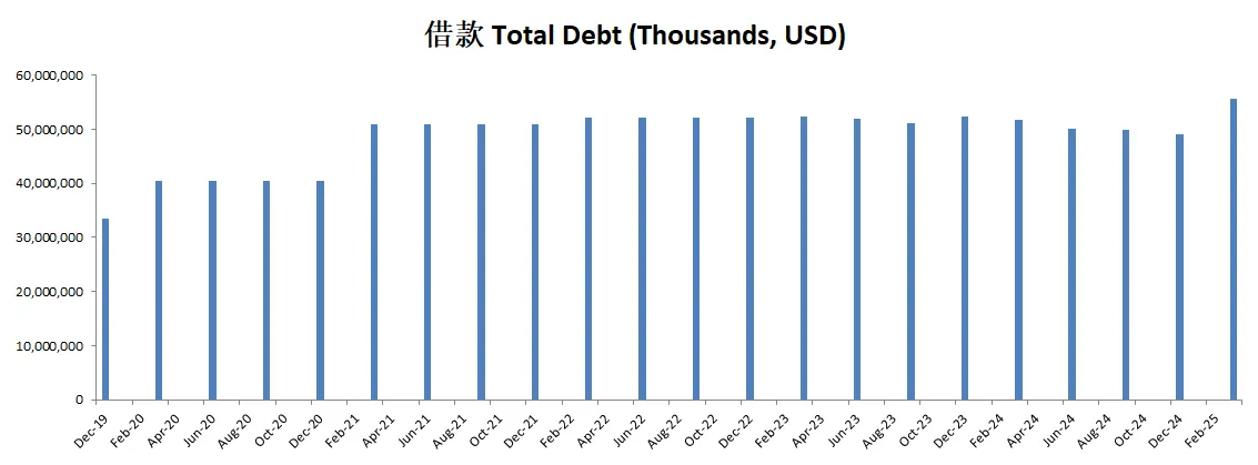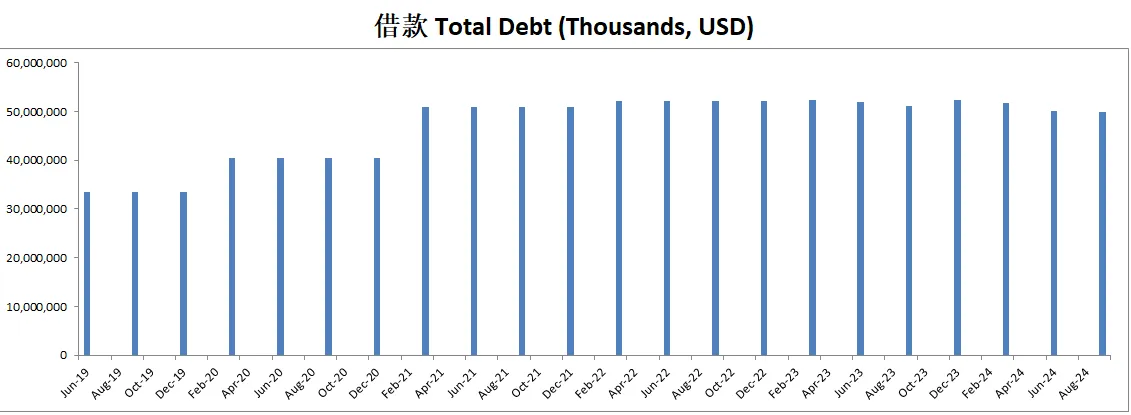 基本面来看,资产负债表非常强劲,虽然有50B借款,但是手里现金几乎足够偿还所有借款