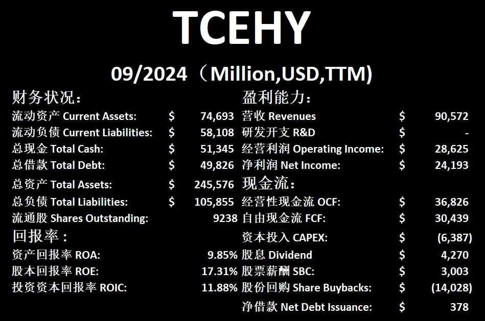 $TCEHY 最新季度一页概览