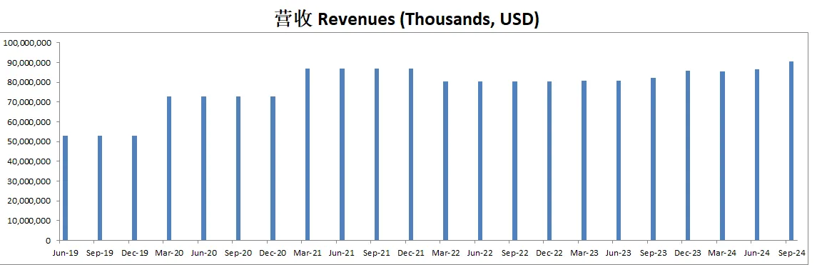 盈利能力持续增长,最新营收来到了84B,5年CAGR有15.26%