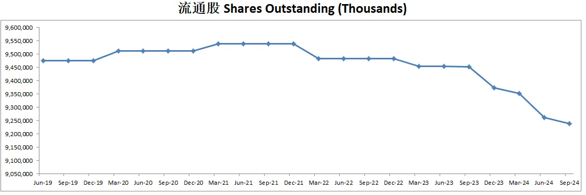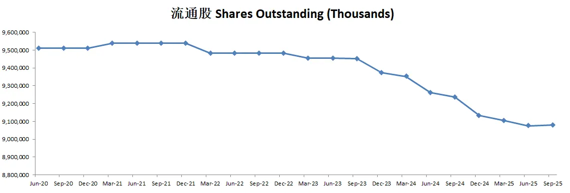 另外,腾讯最新季度进行了少量的增发,流通股从9.23B上升至9.35B