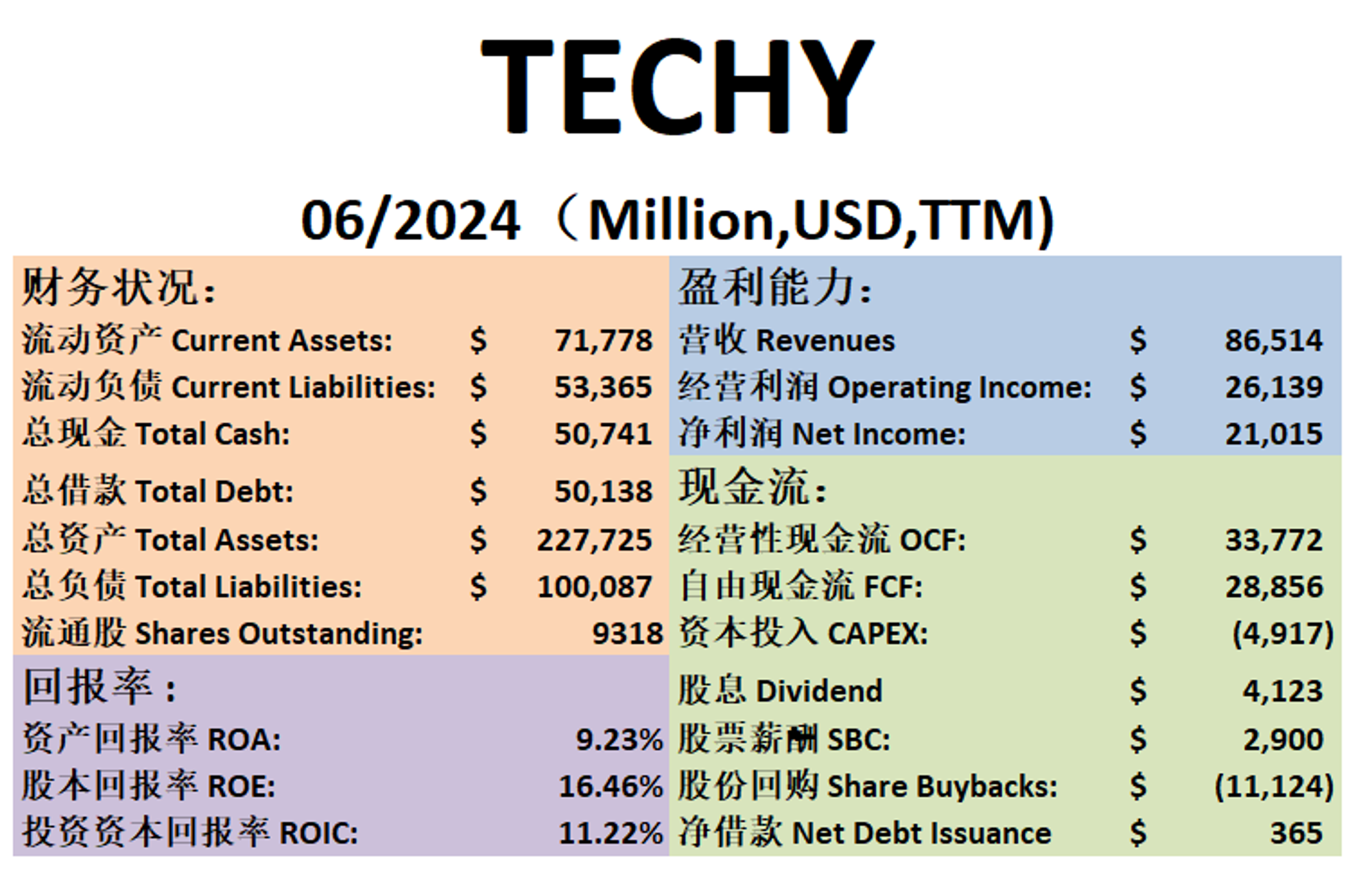 -腾讯的现金分配我认为是有效率的。最后效果是11.11B结余。这点也是符合中国企业的风格。
