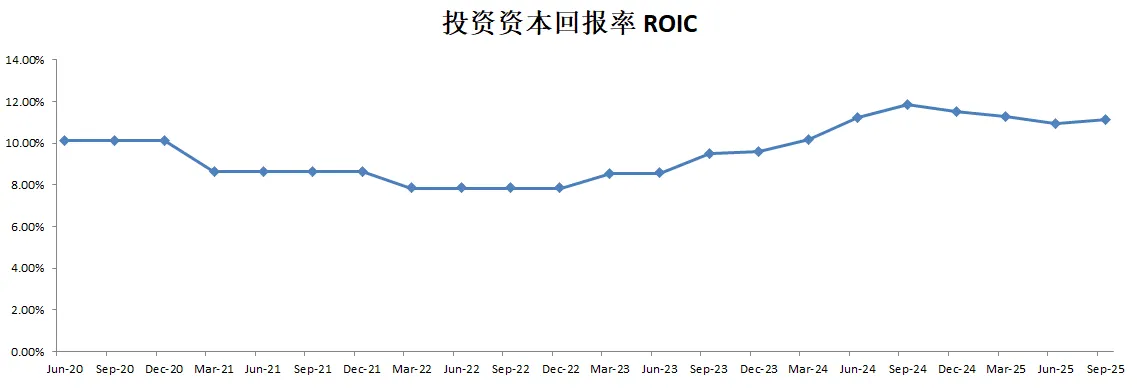 -ROIC表现目前为10.93%