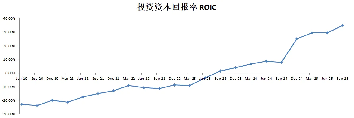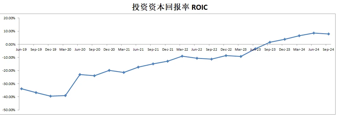 最新ROIC已经来到了9.6%,比上季度多了不少,差不多2倍,目前也将要突破2位数