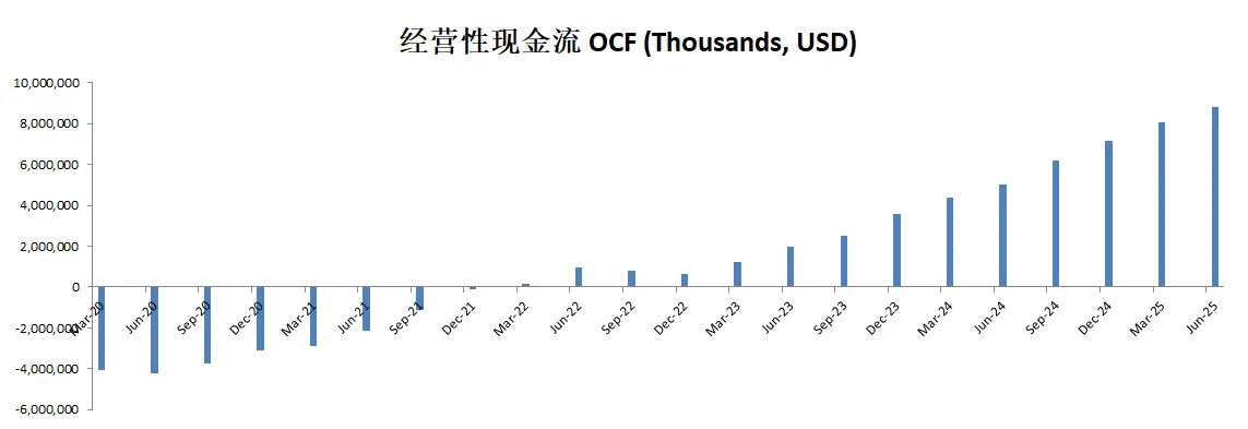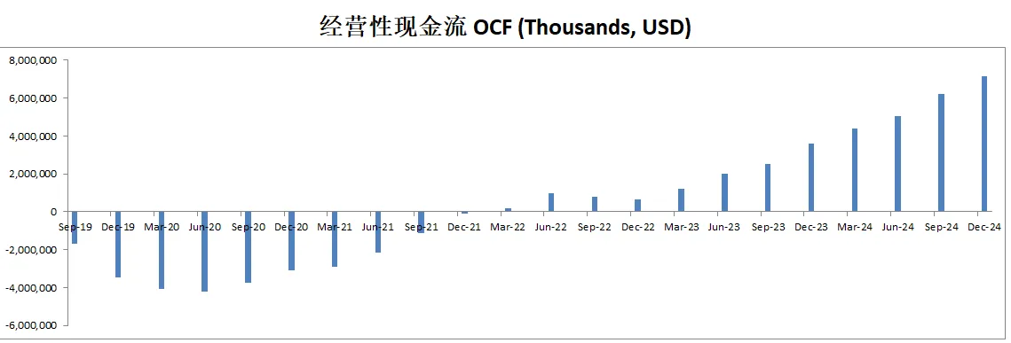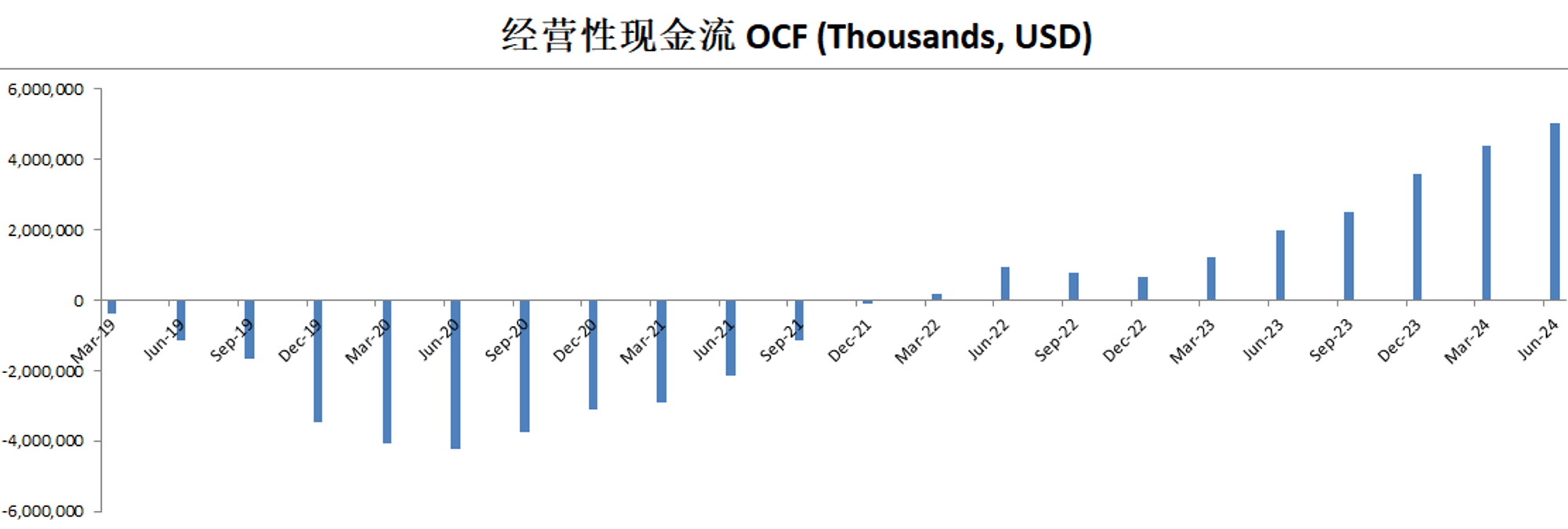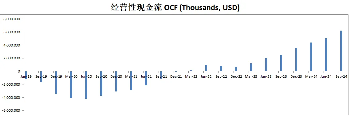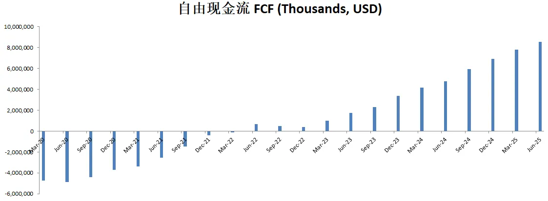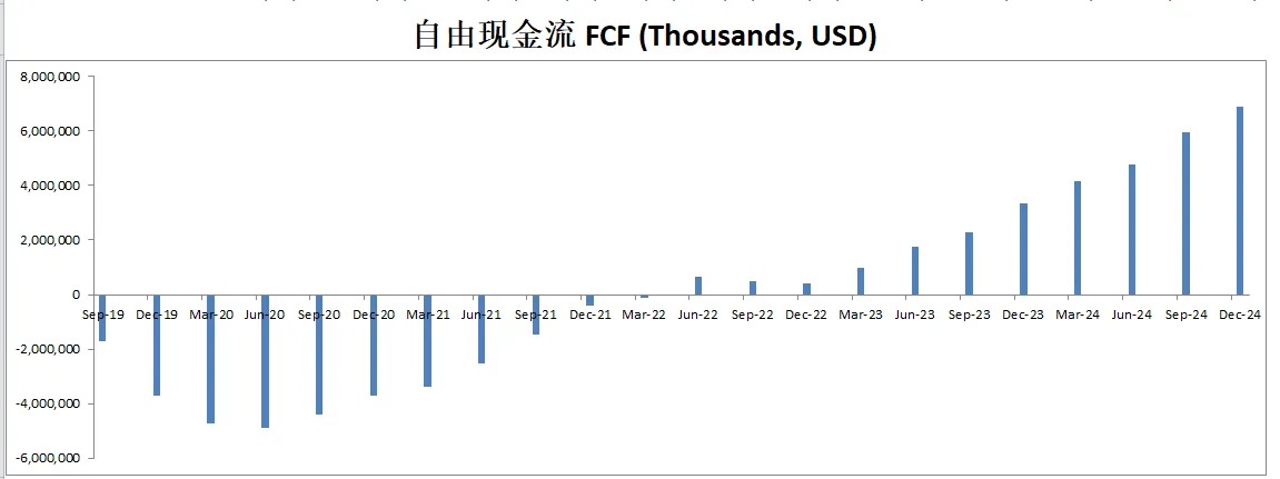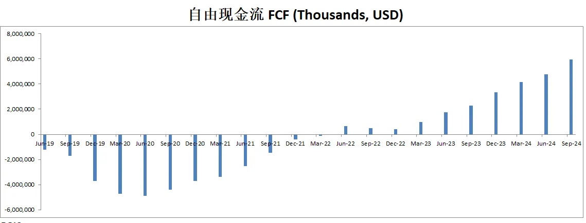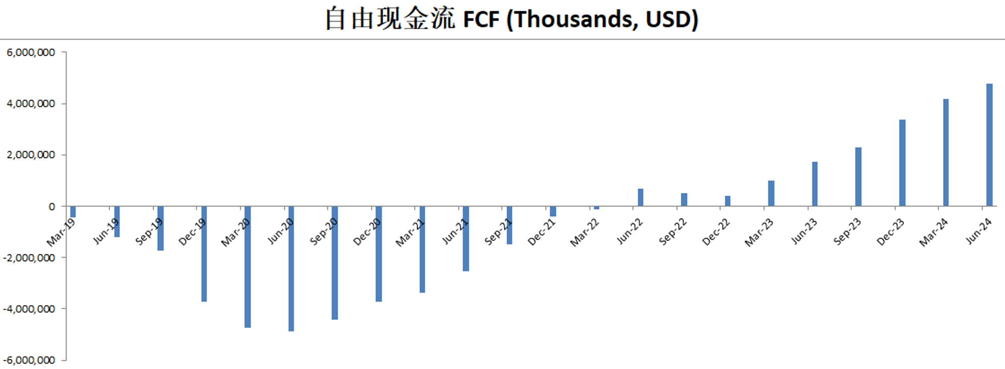 盈利能力也是大幅增长,最新自由现金流已经来到了3.36B,创下历史新高。