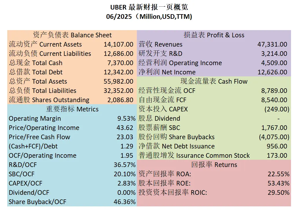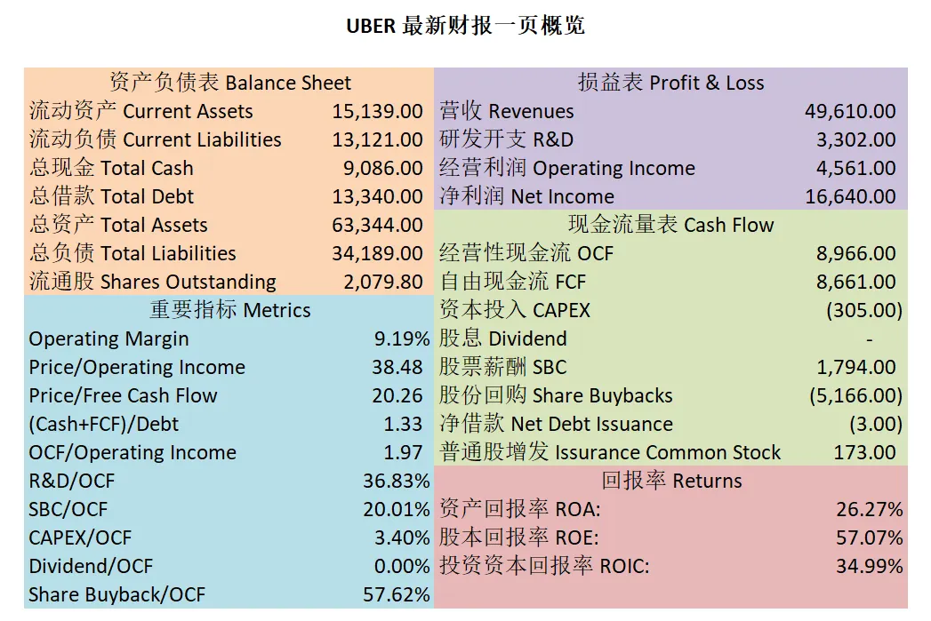 -这个季度Uber的品质分也可以打到75分了。较上个季度也是有所增加。公司除开SBC和R&D和增发之外,其他表现堪称优秀了。