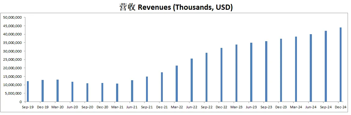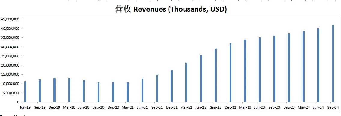 营收刷新新高,目前来到38.59B,5年CAGR有26.52%,这个增长速度相当惊人