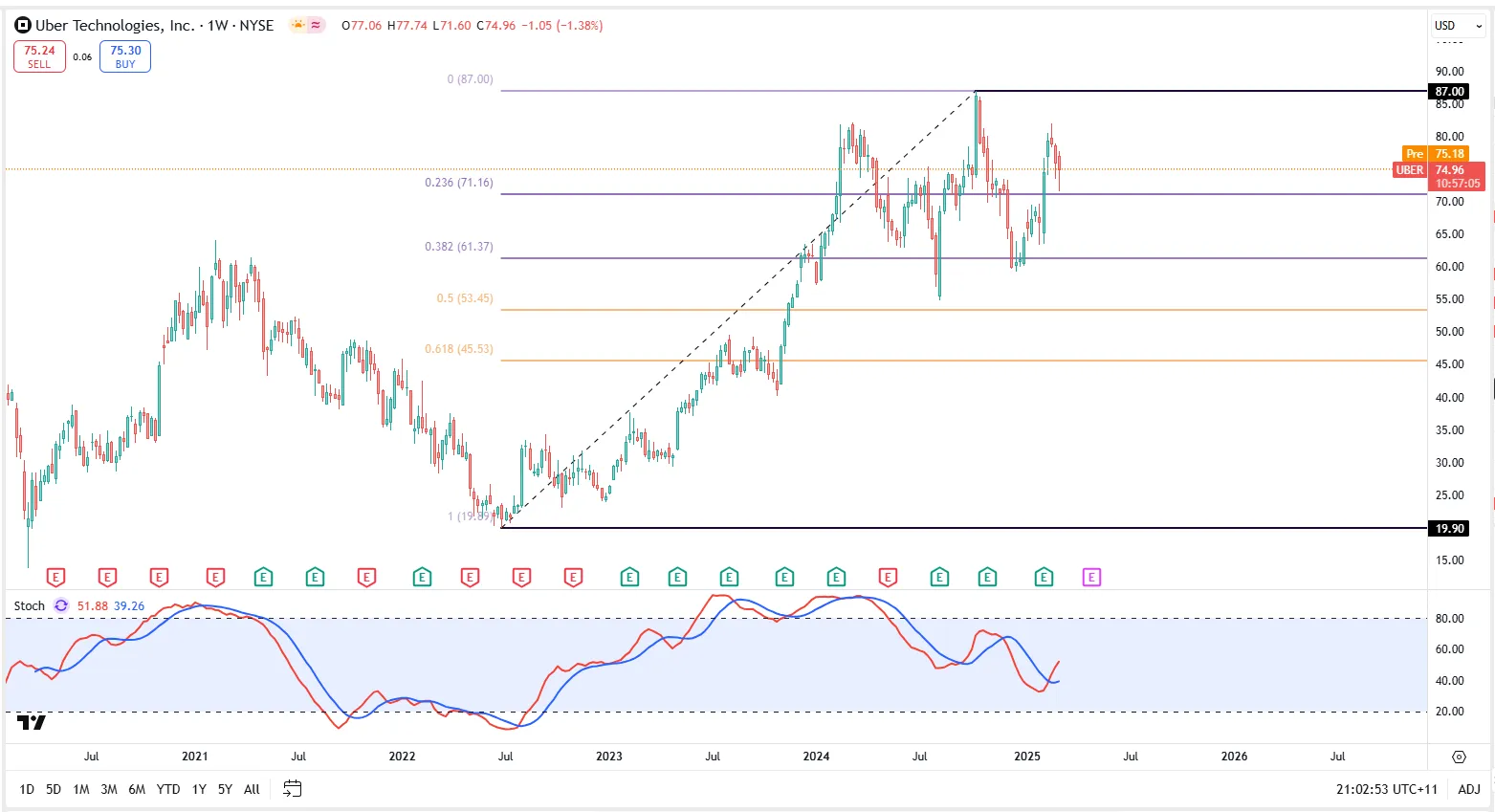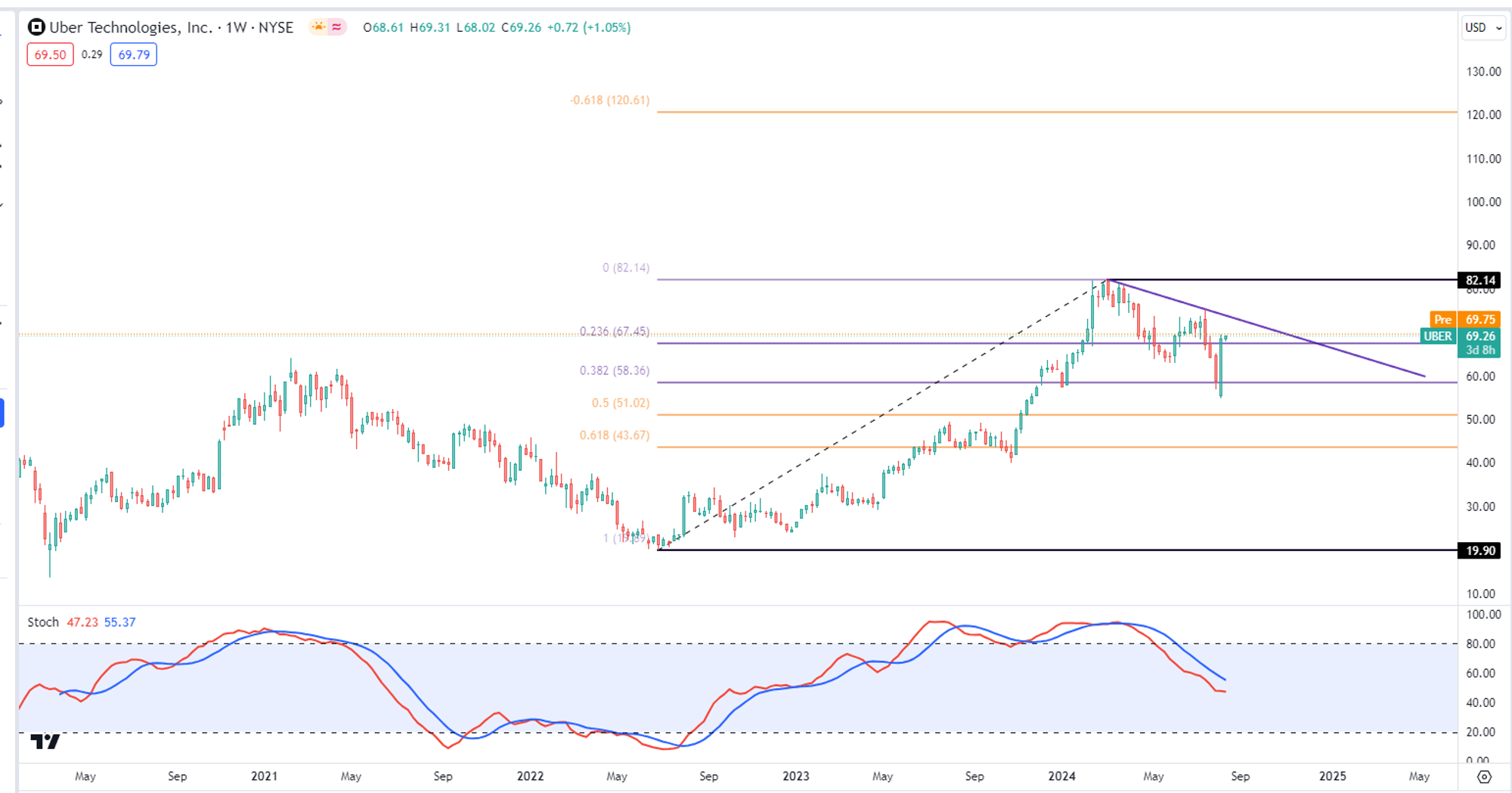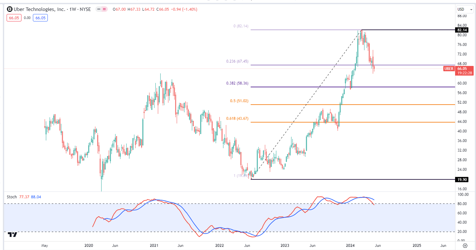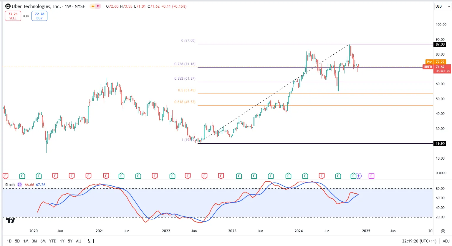 Uber( $UBER )自从22年6月以来,已经一度涨了312.87%,翻了4.13倍
