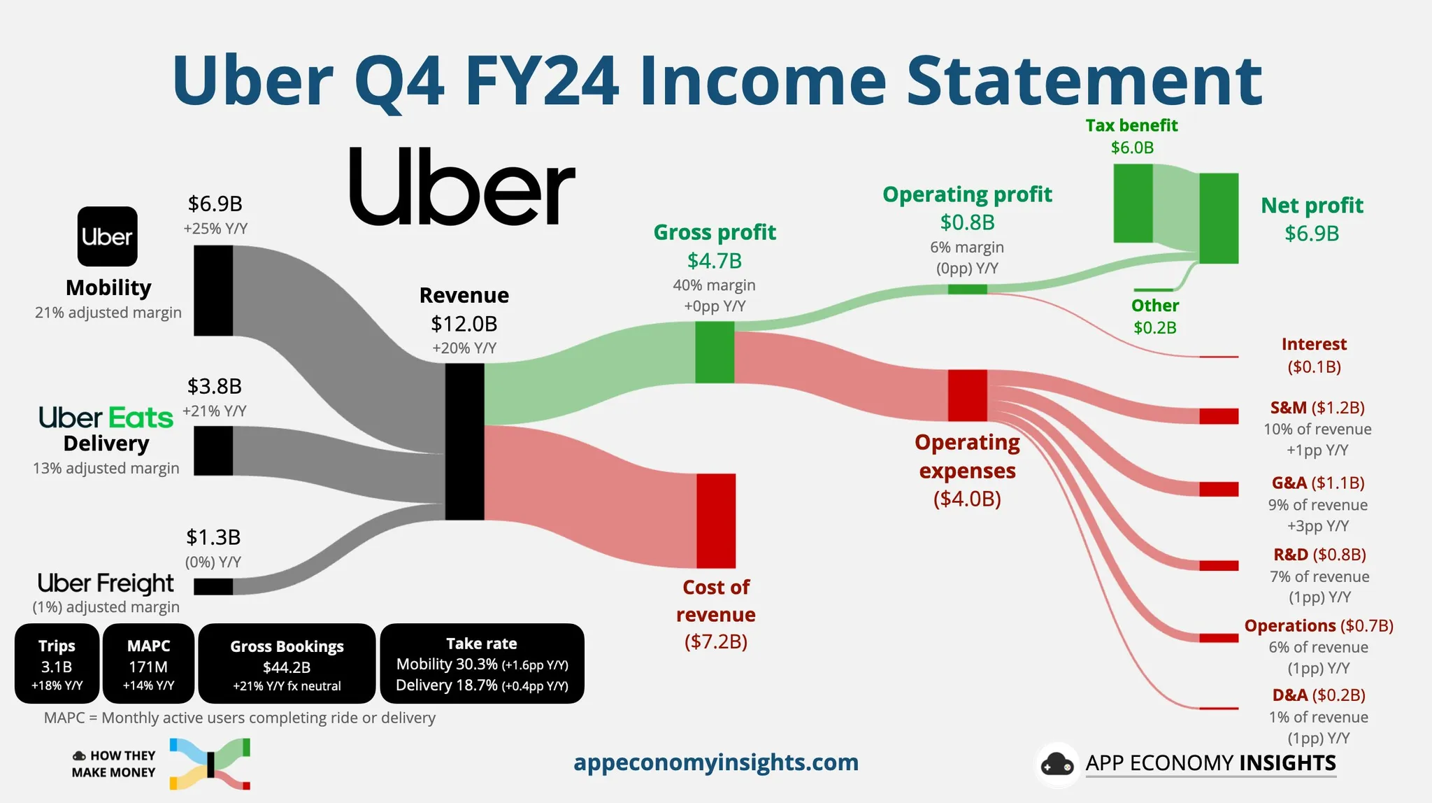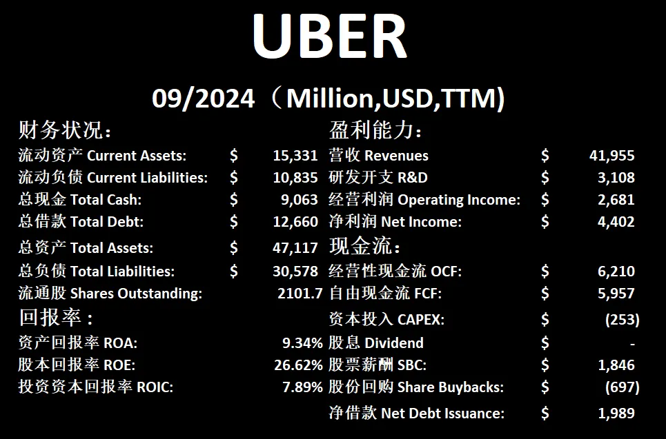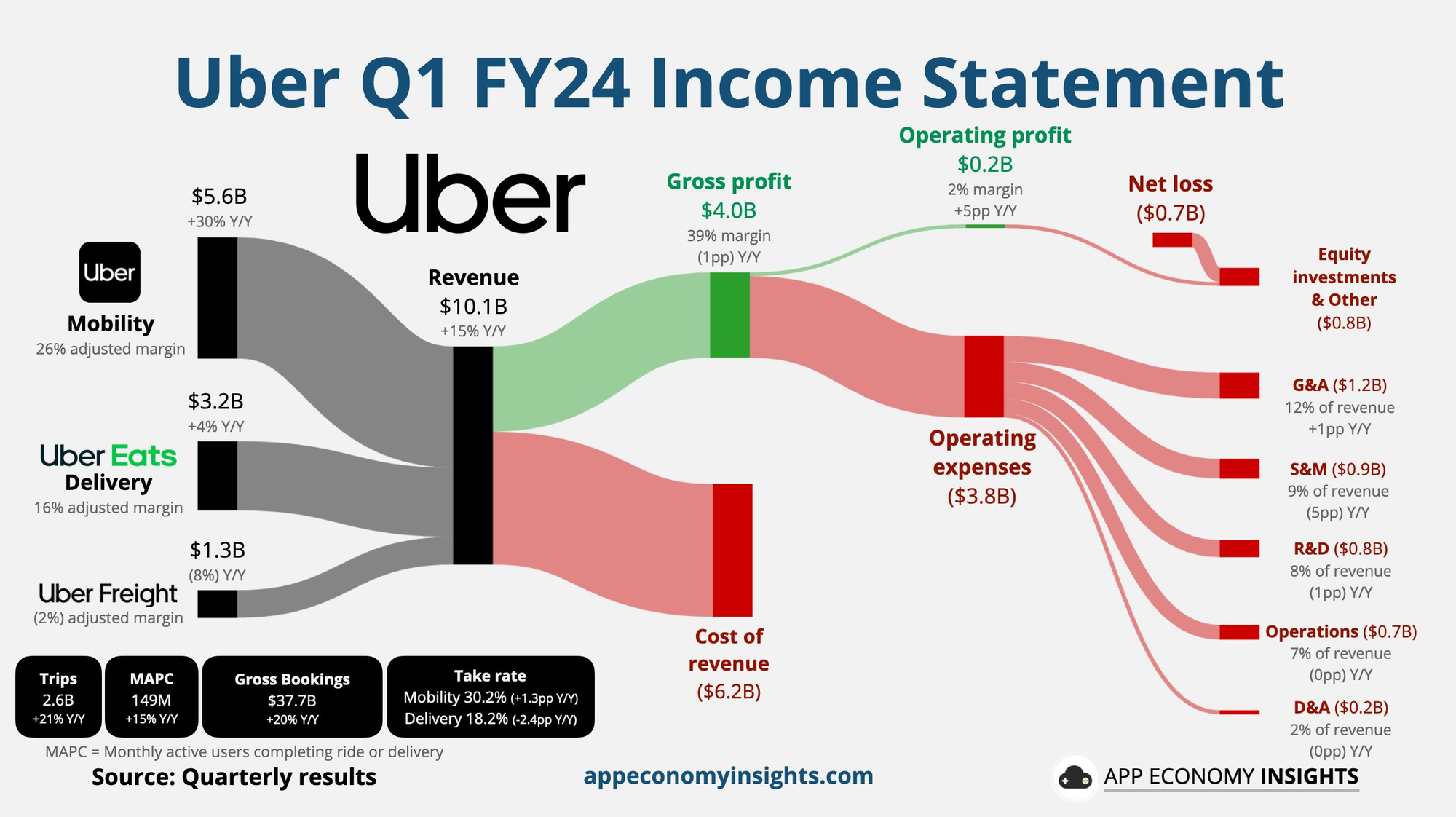 这张图是最新24年Q1季度 $UBER 的业务模型